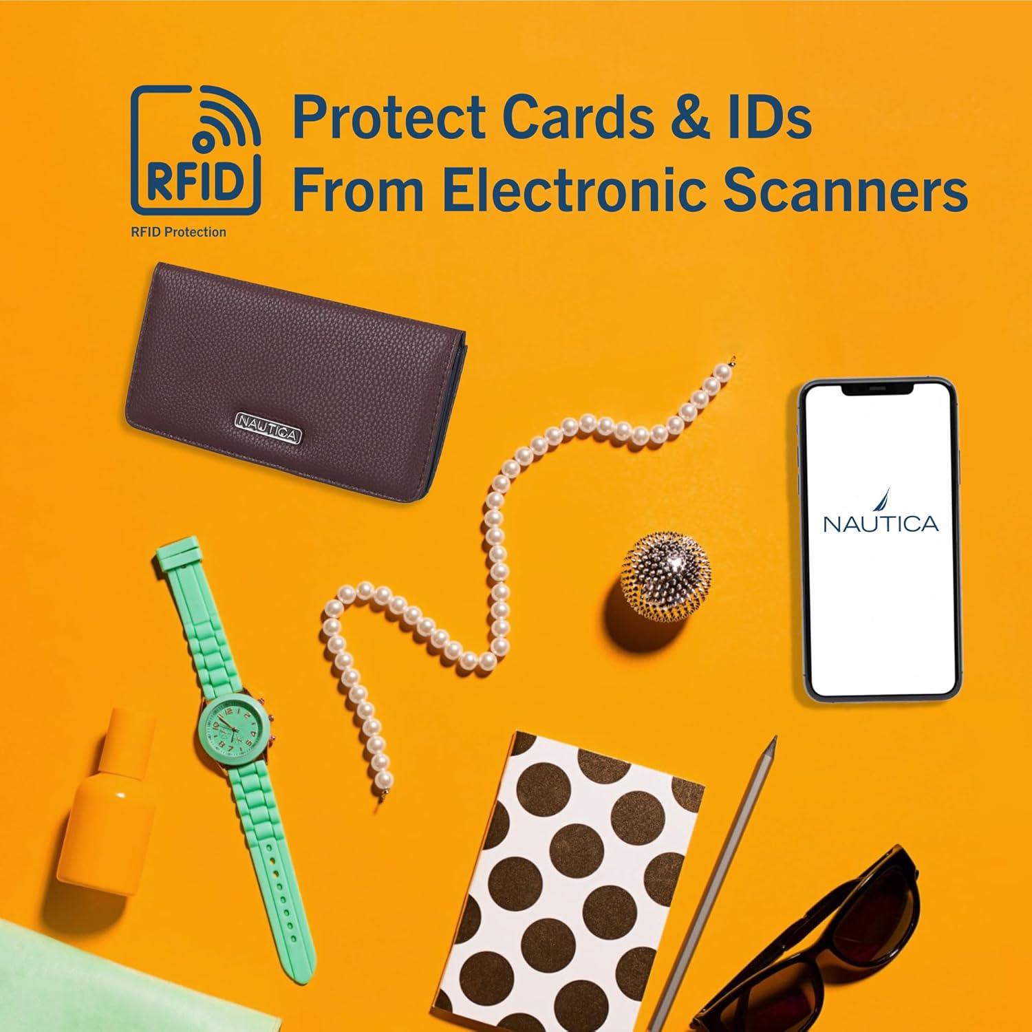 Nautica Seaside Slim Womens Wallet RFID Blocking Credit Card Holder, Coin Purse, Checkbook Organizer Clutch, Small Vegan Leather Wallet for Travel, Black(Colbalt Pebble)