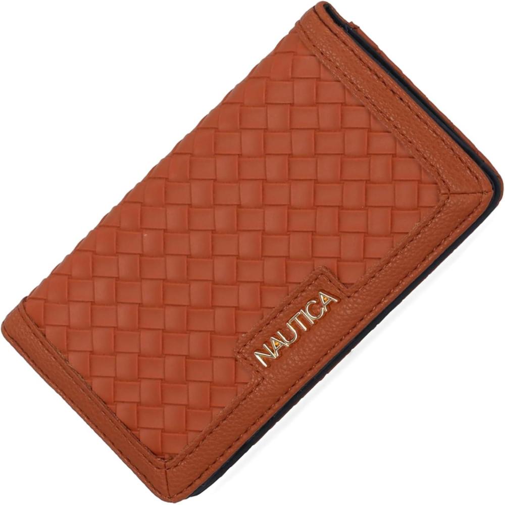 Nautica Seaside Slim Womens Wallet RFID Blocking Credit Card Holder, Coin Purse, Checkbook Organizer Clutch, Small Vegan Leather Wallet for Travel, Black(Cognac (Woven))