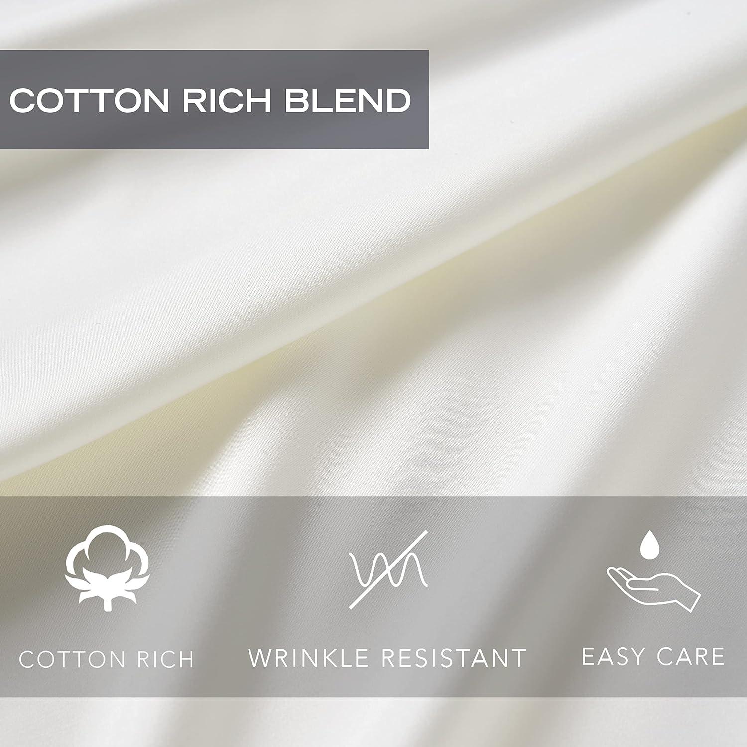 MATERIAL: Cotton-rich blend- 60% Cotton/40% Polyester- Combining cotton with polyester creates a sheet that is easy to care for and wrinkle resistant; Woven to be a lightweight sheet that is durable and great for year round use; Plain weave ensures smooth hand feel and piece dyed for color that lasts