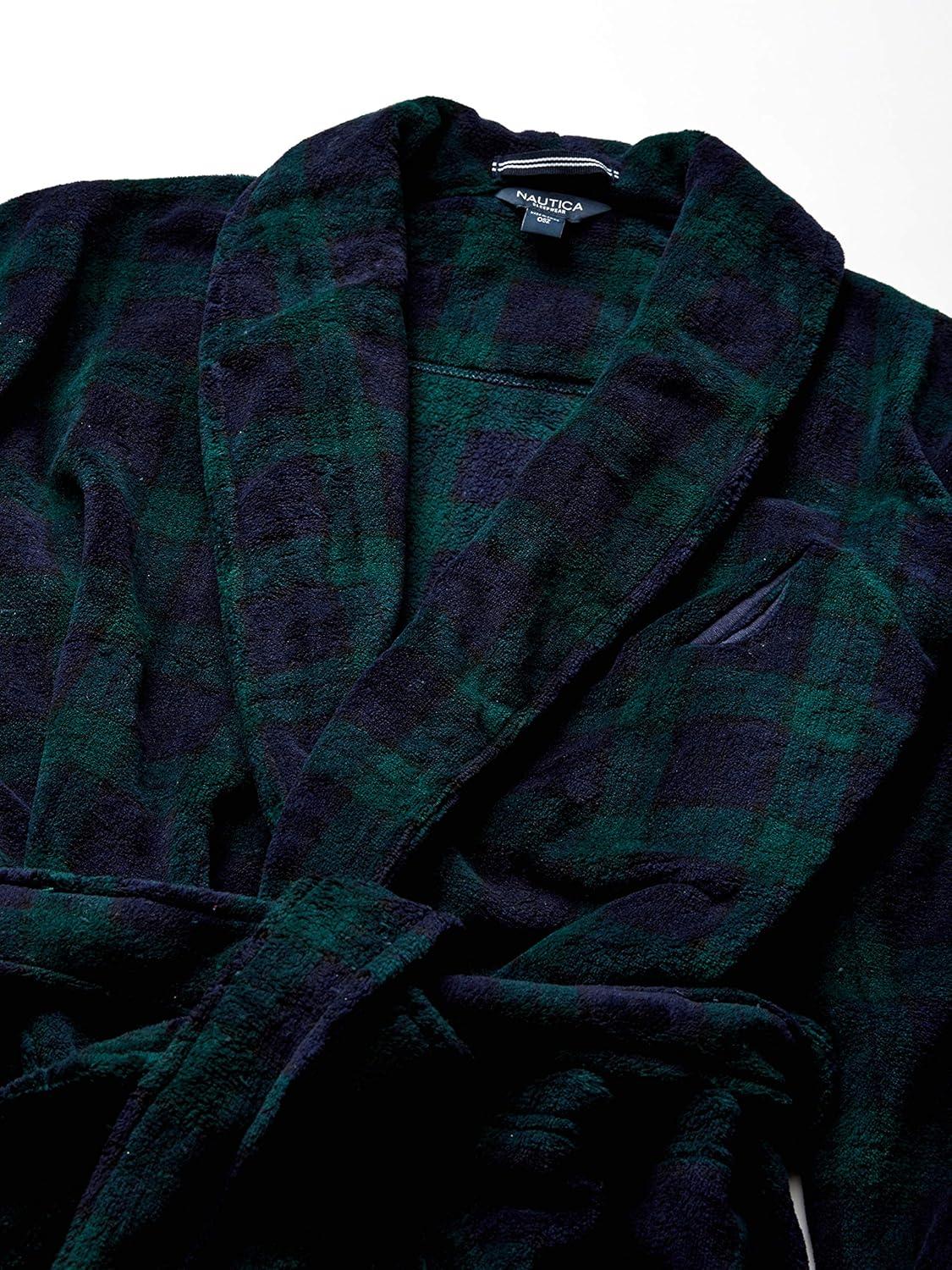 An equally cozy cover-up to top your favorite pair of pajamas, this robe has relaxed shawl-collar styling and a plush fabrication for ultimate relaxation. From Nautica.