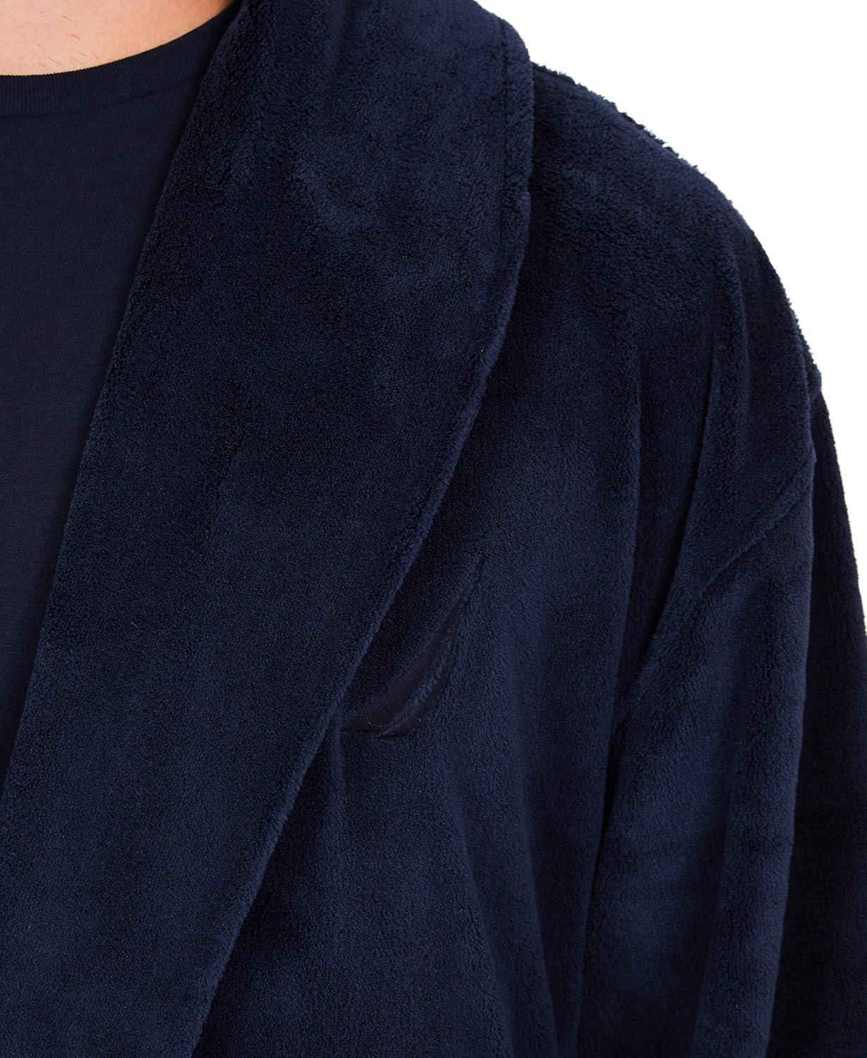 An equally cozy cover-up to top your favorite pair of pajamas, this robe has relaxed shawl-collar styling and a plush fabrication for ultimate relaxation. From Nautica.