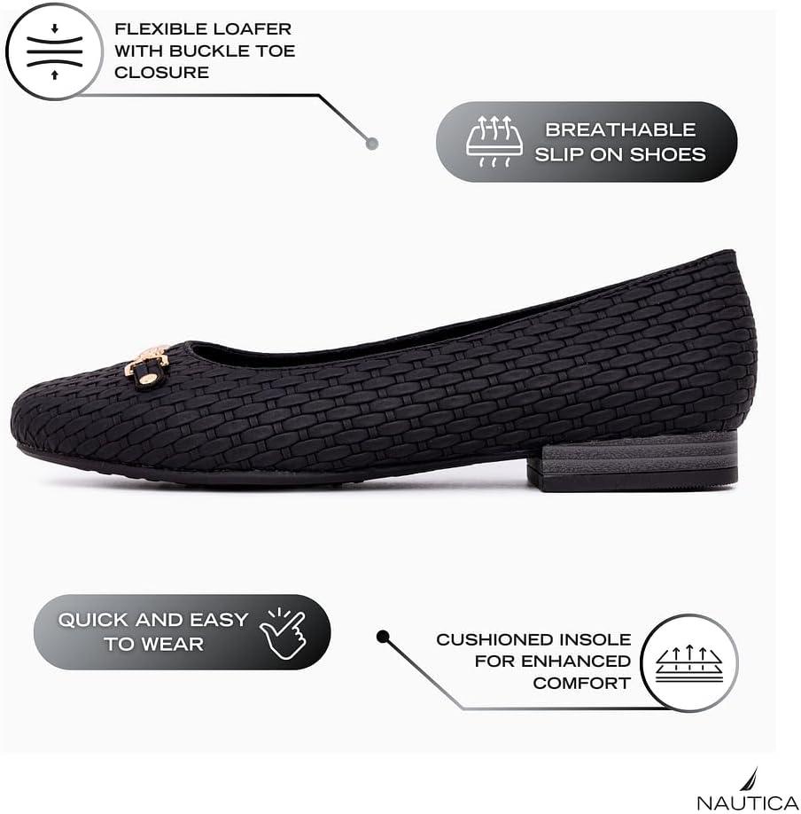 Nautica Woman Flat Loafers Luxury Designer Penny Shoes Slip On Ballet Comfortable Everyday Moccasins for Work Office Outdoor(Black Montoya)