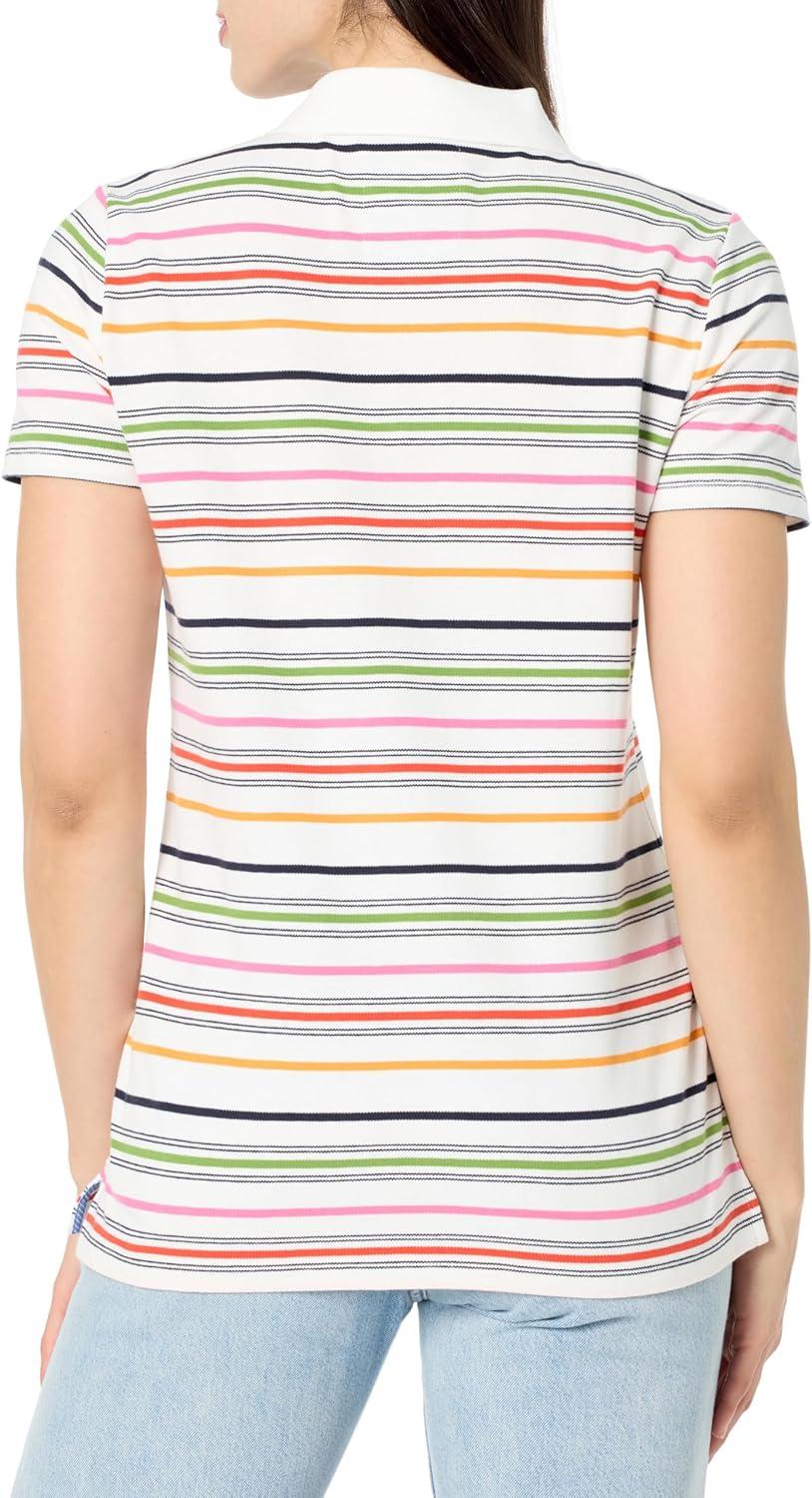 Nautica Women’s 5-Button Short Sleeve Breathable 100% Cotton Polo Shirt(Bright White Multi)