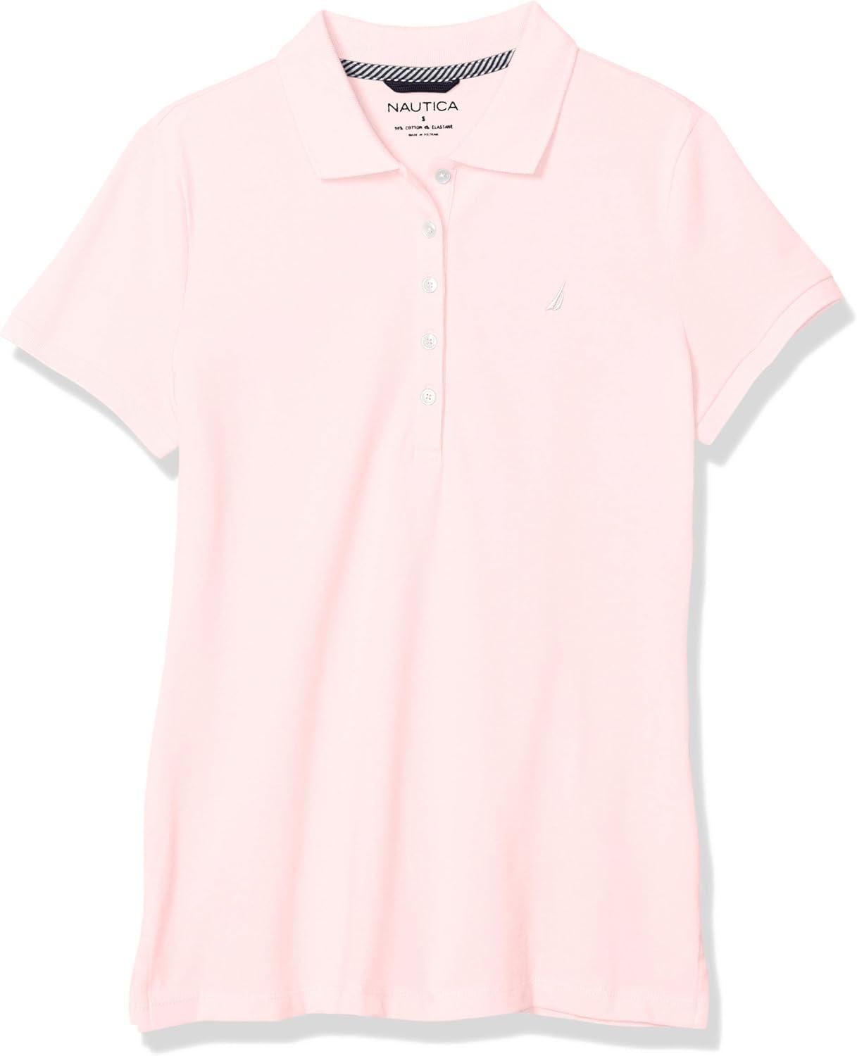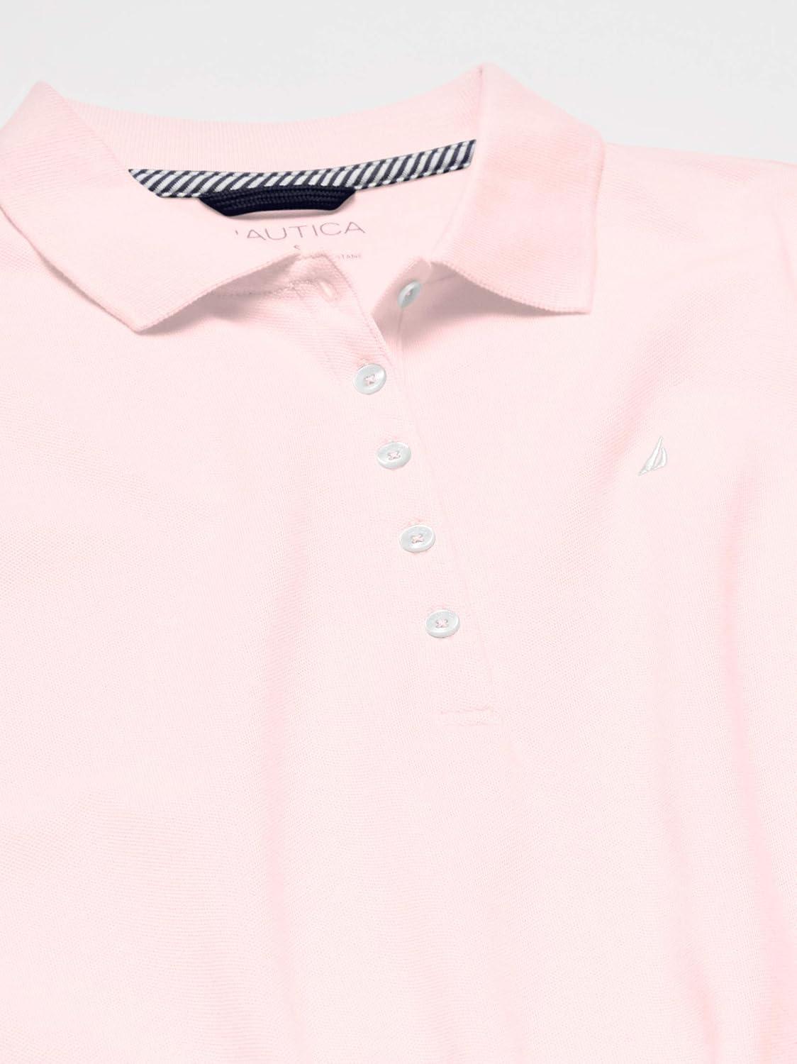 Nautica Women's 5-Button Short Sleeve Breathable 100% Cotton Polo Shirt(Cradle Pink)