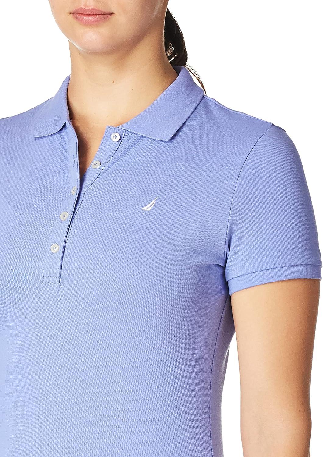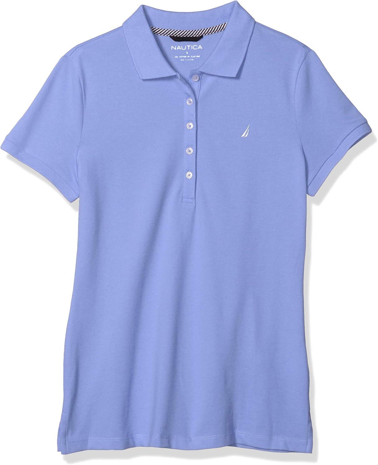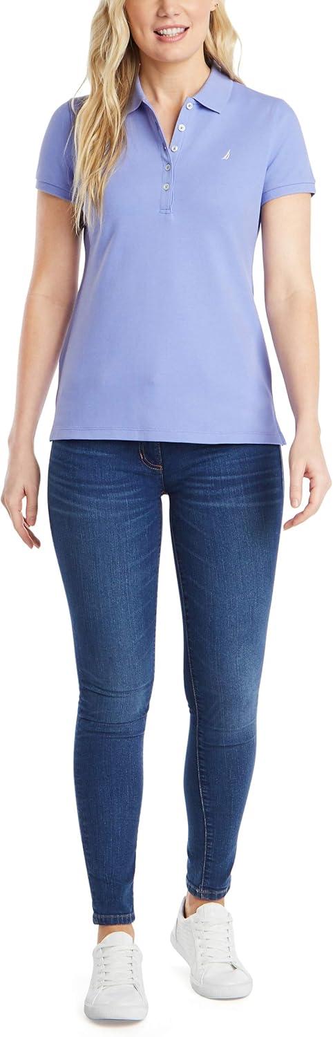Nautica Women's 5-Button Short Sleeve Breathable 100% Cotton Polo Shirt(Deep Peri)