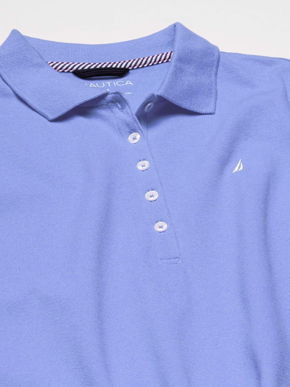 Nautica Women’s 5-Button Short Sleeve Breathable 100% Cotton Polo Shirt(Deep Peri)