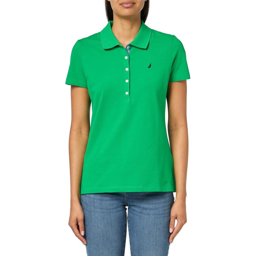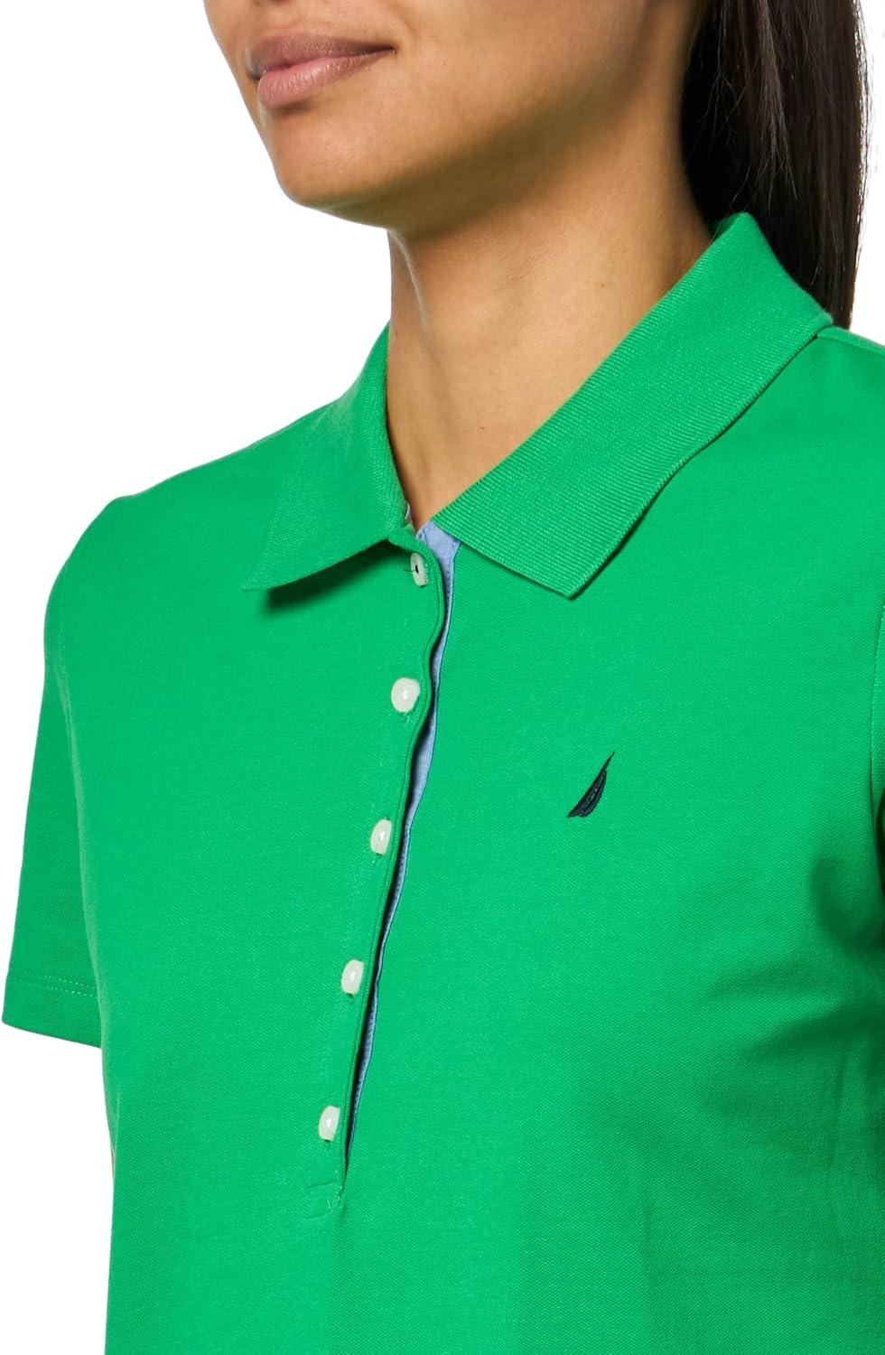 Nautica Women’s 5-Button Short Sleeve Breathable 100% Cotton Polo Shirt(Fern)