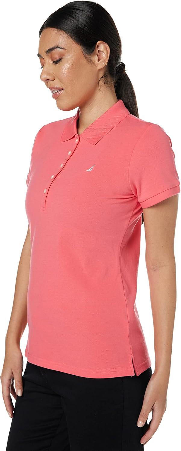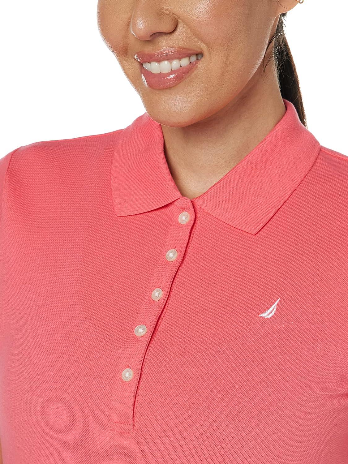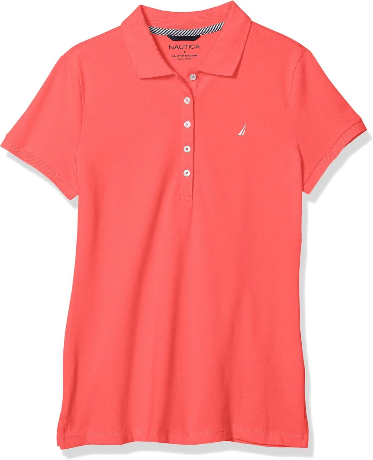 Nautica Women’s 5-Button Short Sleeve Breathable 100% Cotton Polo Shirt(Melon Pink)