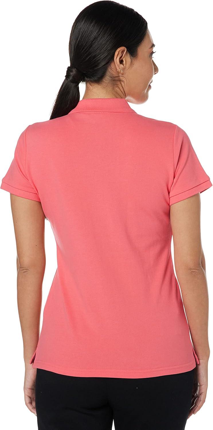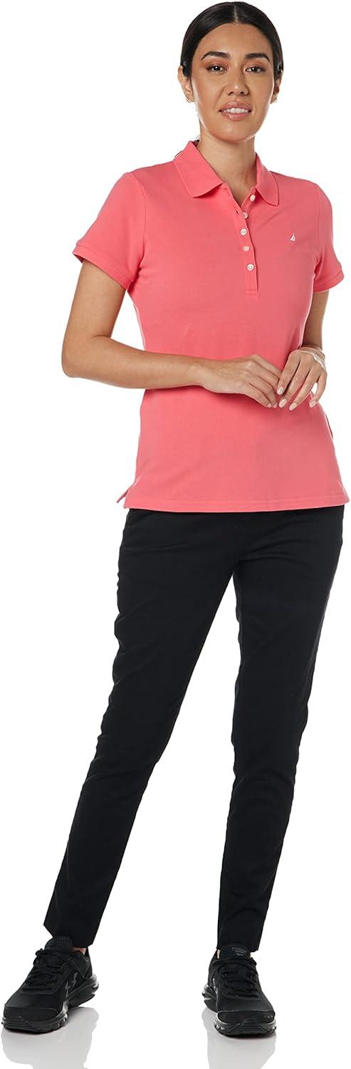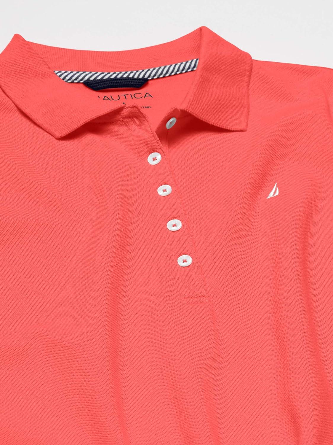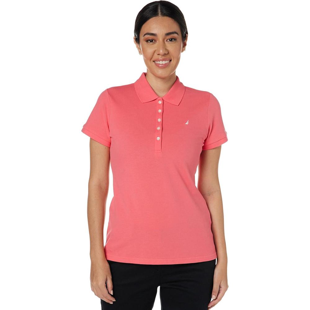 Nautica Women’s 5-Button Short Sleeve Breathable 100% Cotton Polo Shirt(Melon Pink)