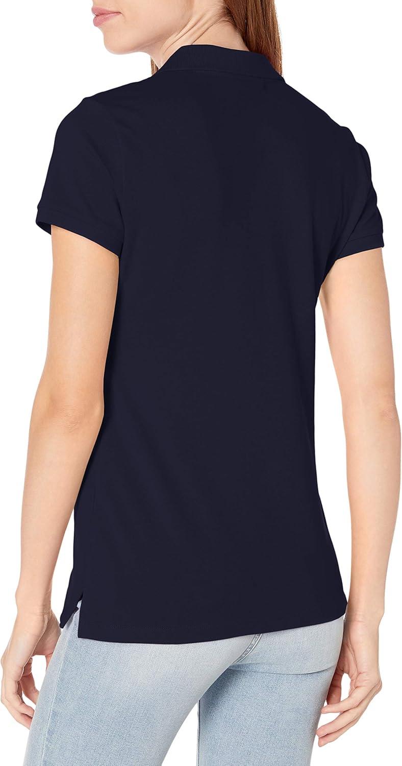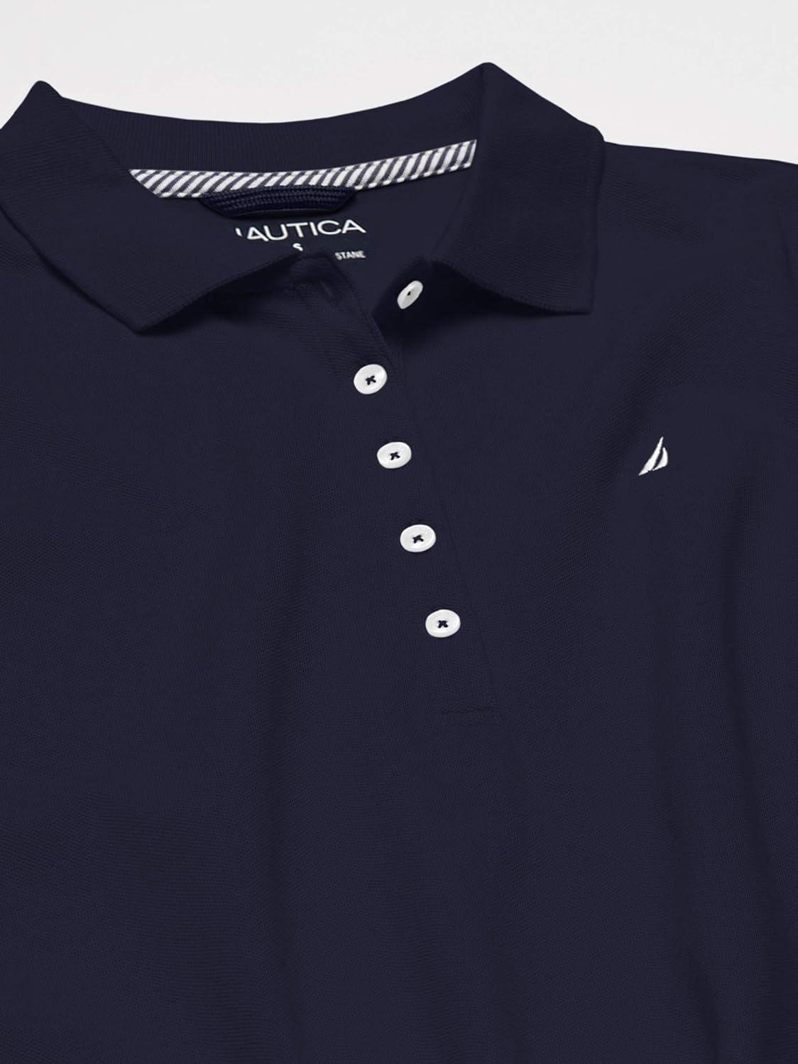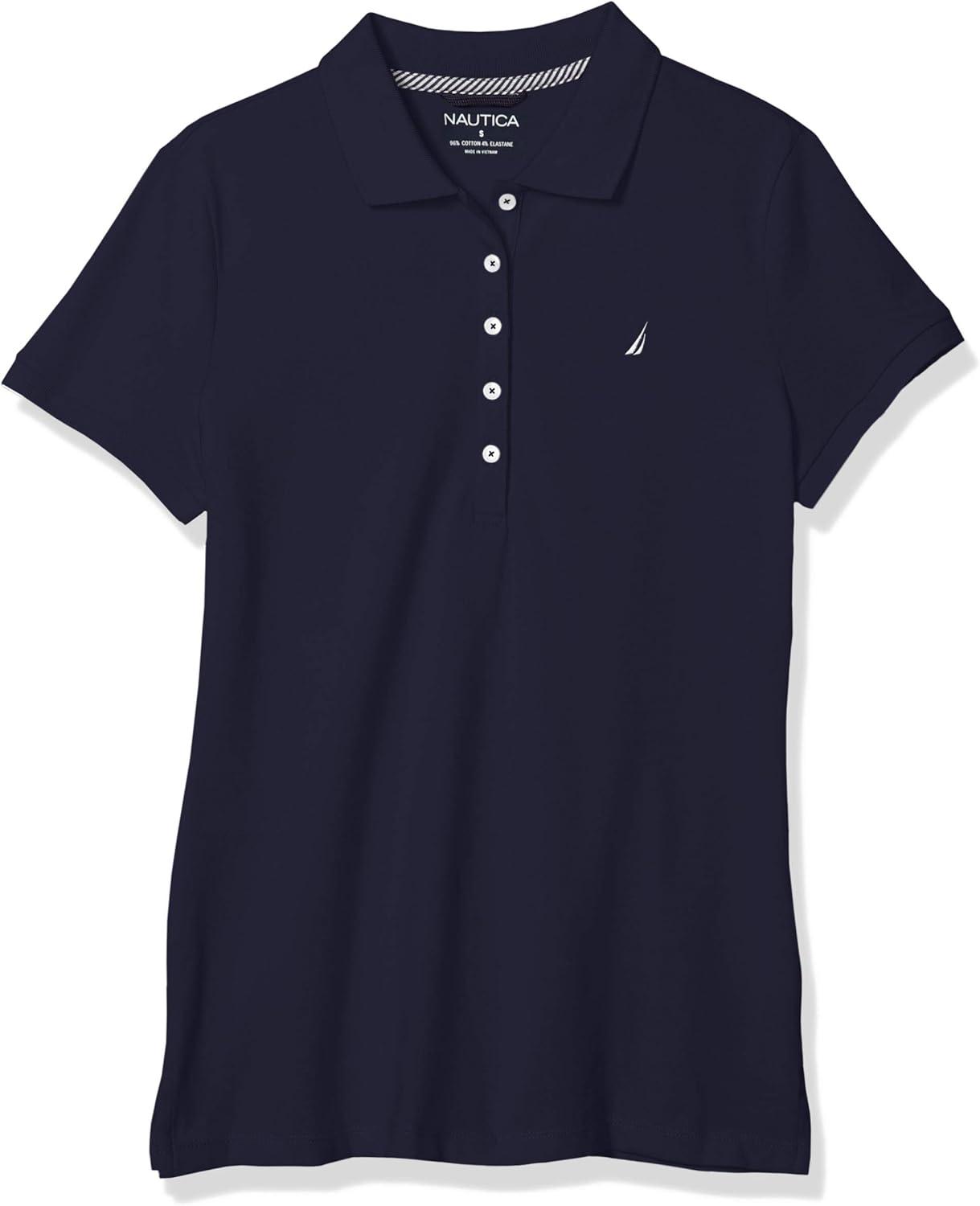 Nautica Women's 5-Button Short Sleeve Breathable 100% Cotton Polo Shirt(Navy)