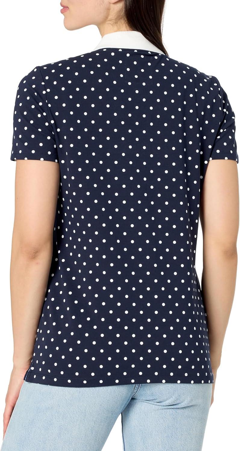 Nautica Women's 5-Button Short Sleeve Breathable 100% Cotton Polo Shirt(Poka Dot White/Night Sky)