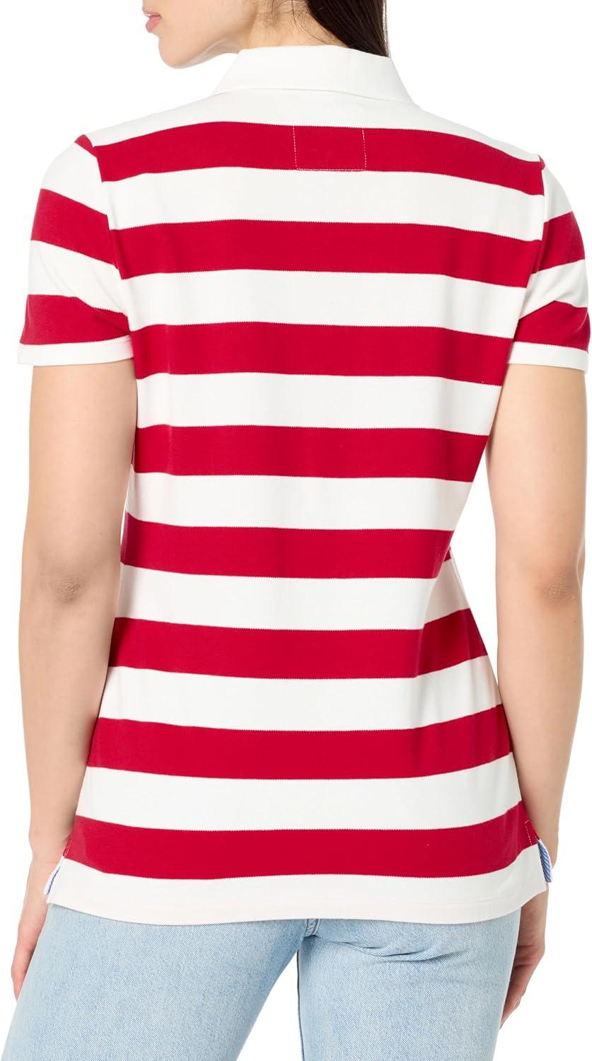 Nautica Women's 5-Button Short Sleeve Breathable 100% Cotton Polo Shirt(Regatta Red/Bright White)
