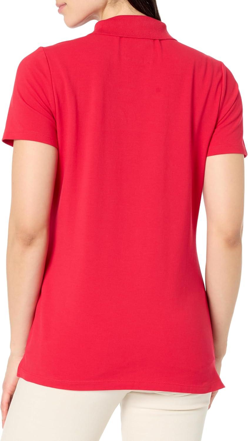 Nautica Women’s 5-Button Short Sleeve Breathable 100% Cotton Polo Shirt(Regatta Red)