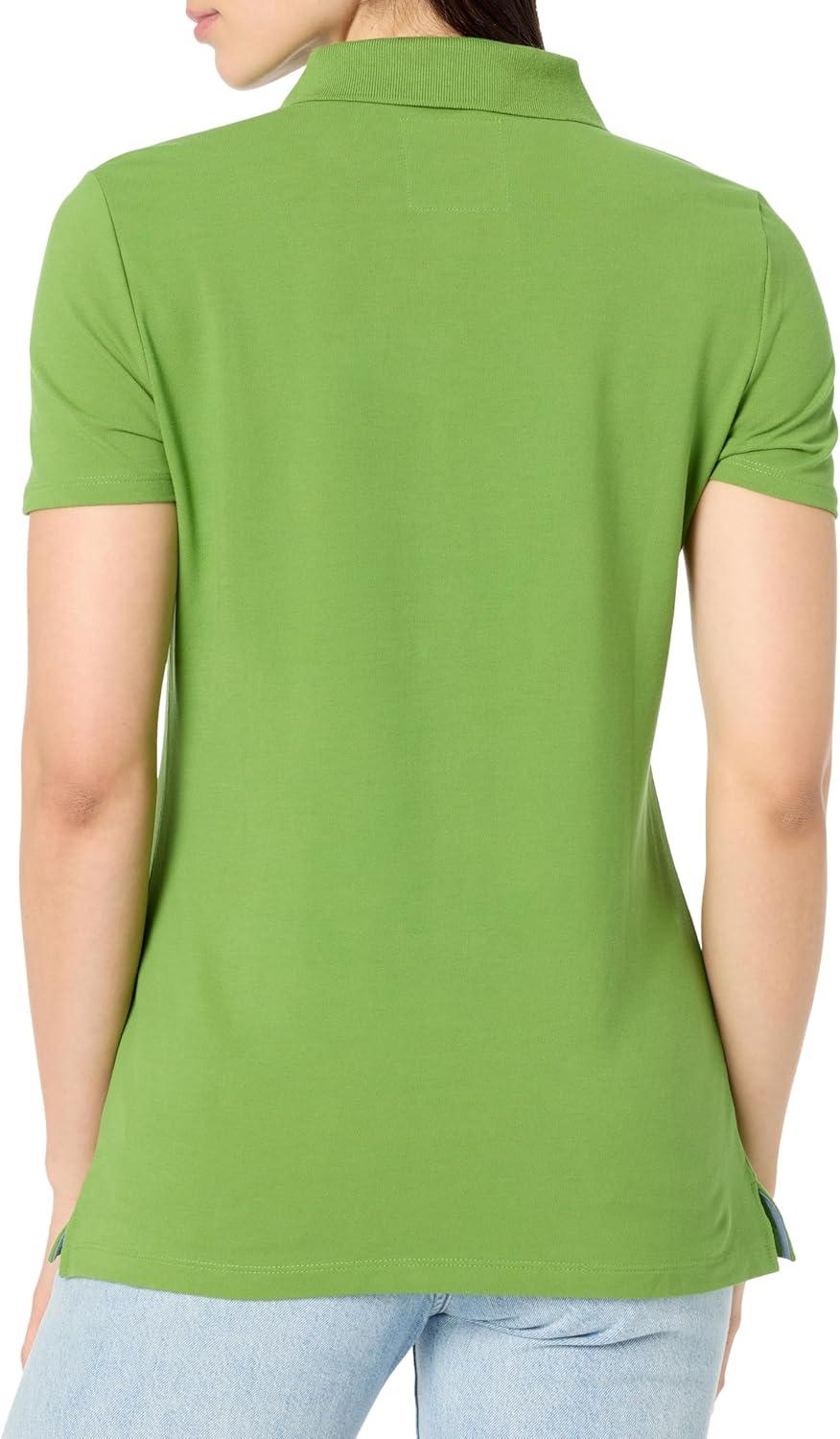 Nautica Women's 5-Button Short Sleeve Breathable 100% Cotton Polo Shirt(Salted Lime)