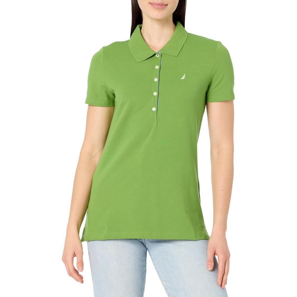 Nautica Women’s 5-Button Short Sleeve Breathable 100% Cotton Polo Shirt(Salted Lime)