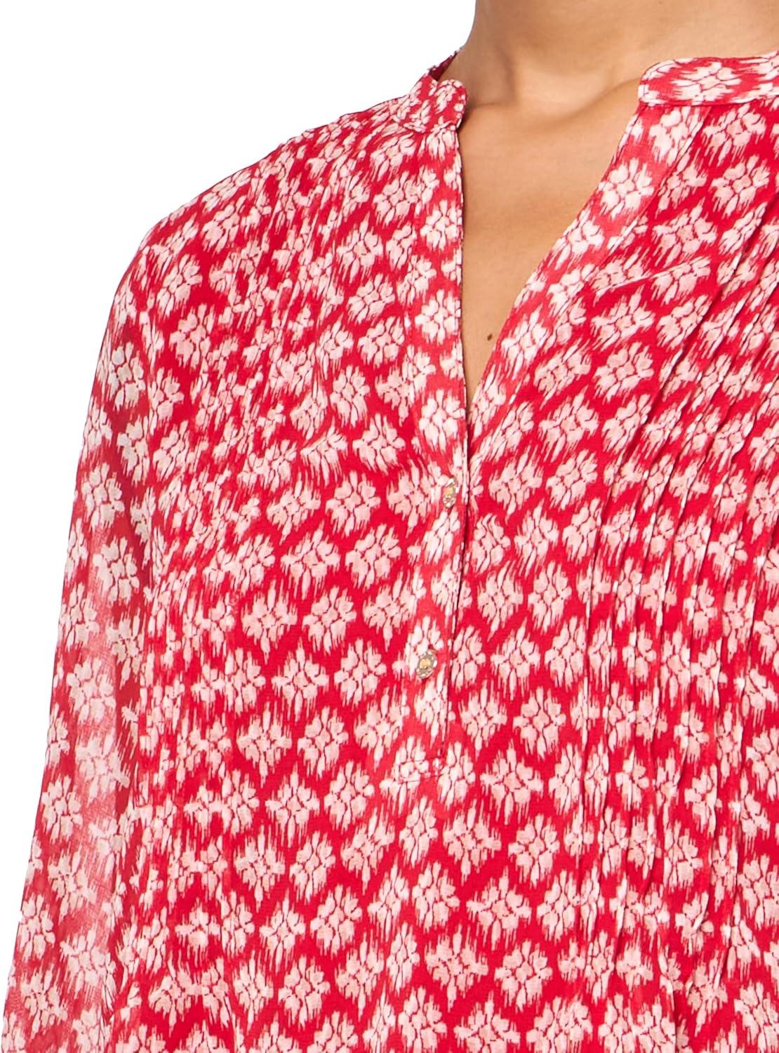 Nautica Women's 5-Button Short Sleeve Breathable 100% Cotton Polo Shirt(Samba Multi)