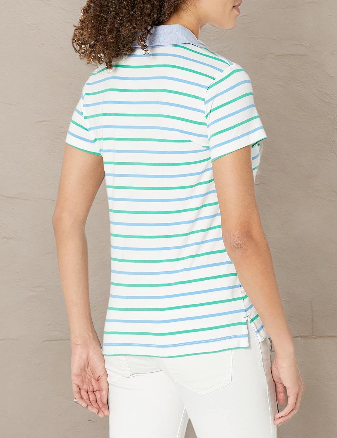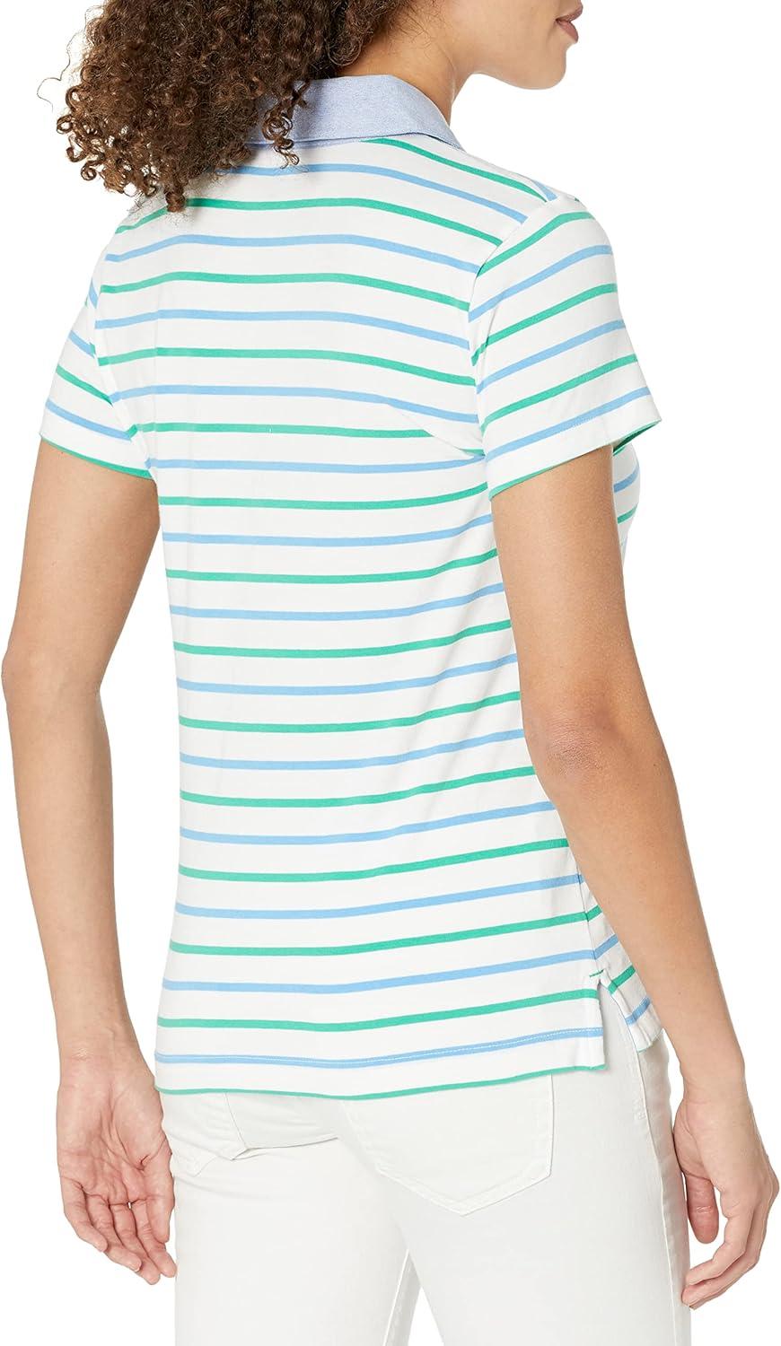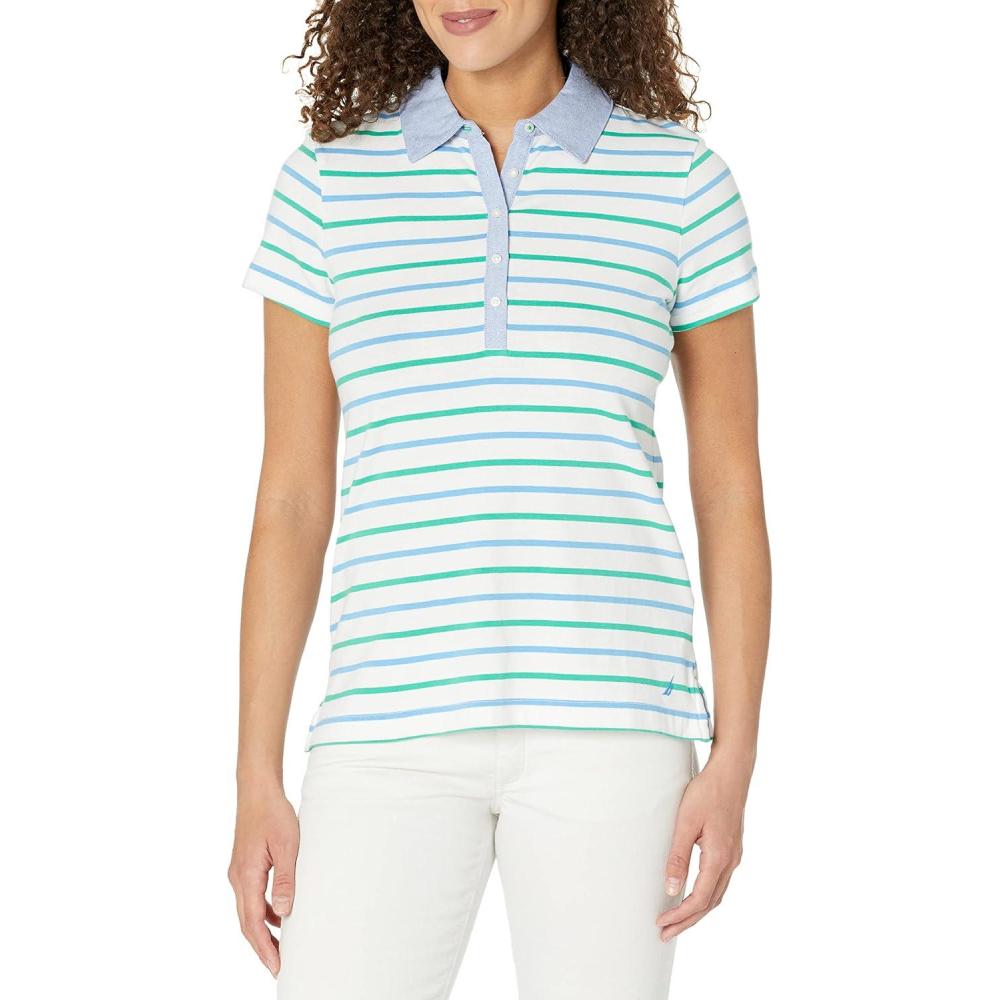 Nautica Women’s 5-Button Short Sleeve Breathable 100% Cotton Polo Shirt(Antigua Surf)
