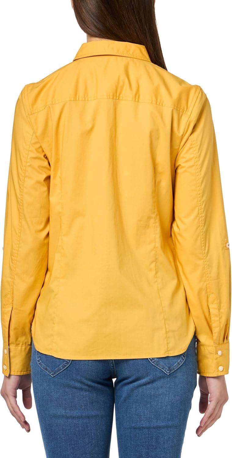 Nautica Womens Button Front Long Sleeve Roll Tab Shirt(Deep Maize)