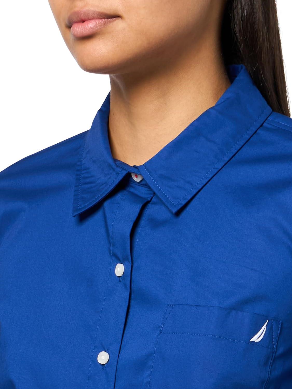 Nautica Womens Button Front Long Sleeve Roll Tab Shirt(Marina Blue)