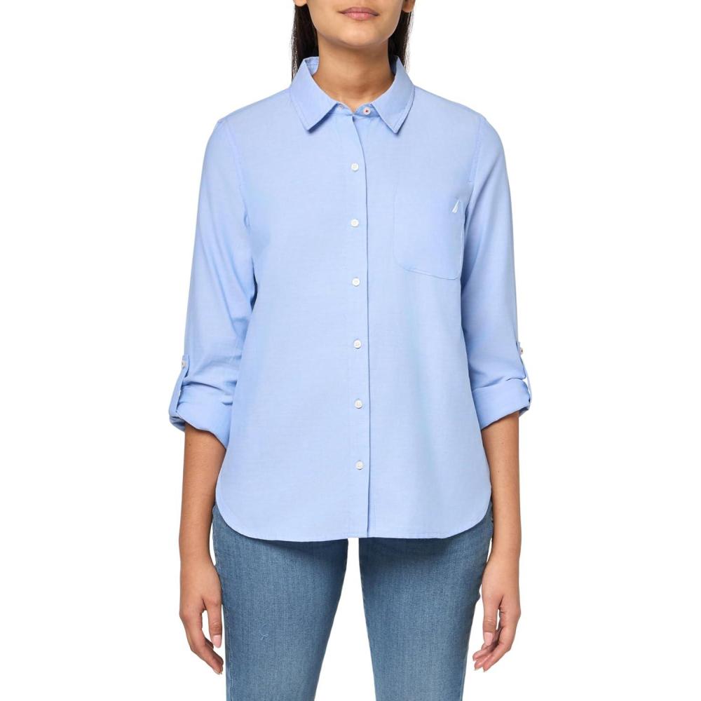 Be the first to review “Nautica Womens Button Front Long Sleeve Roll Tab Shirt(Oxford French Blue)”