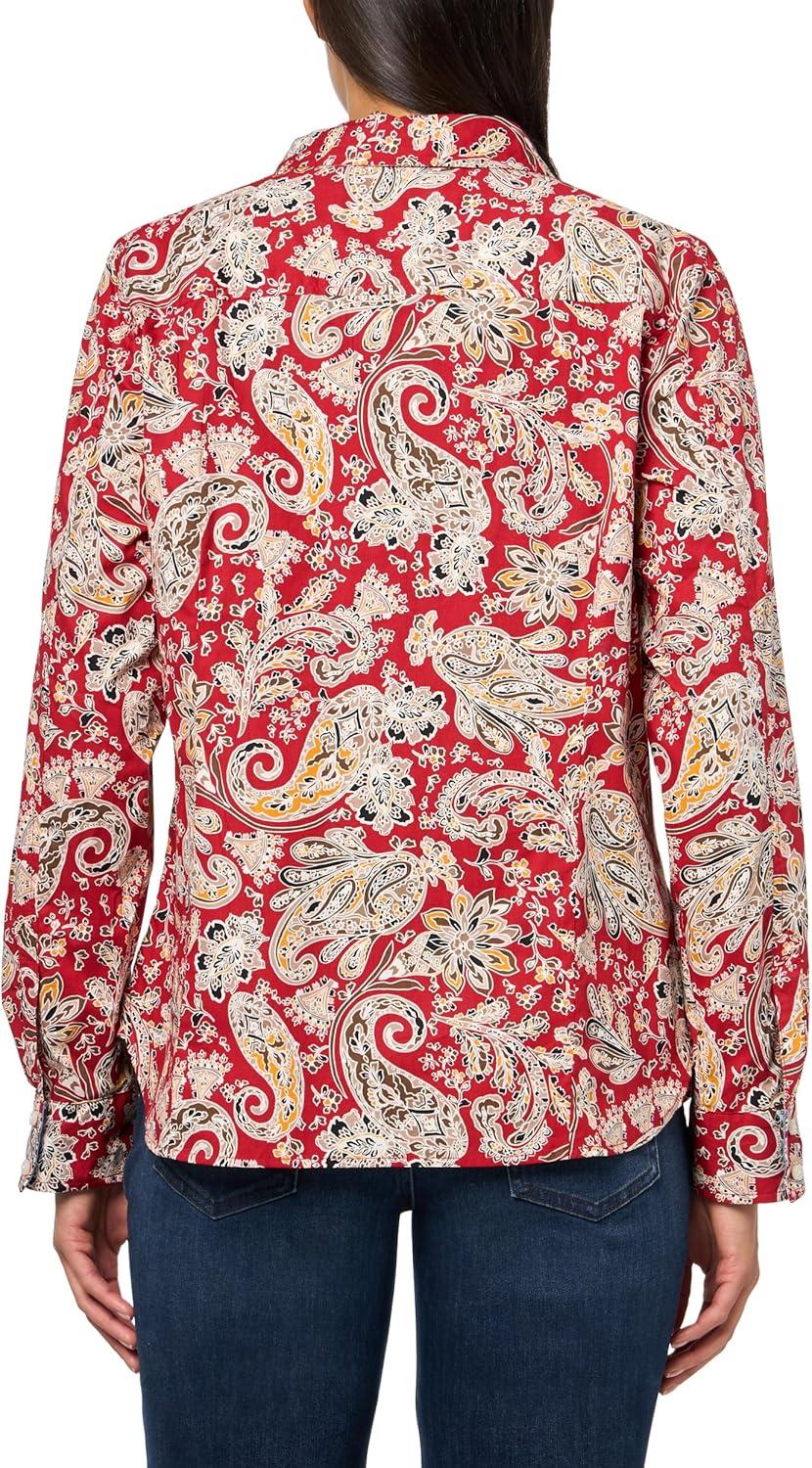 Nautica Women’s Button Front Long Sleeve Roll Tab Shirt(Sangria Sunset Multi)