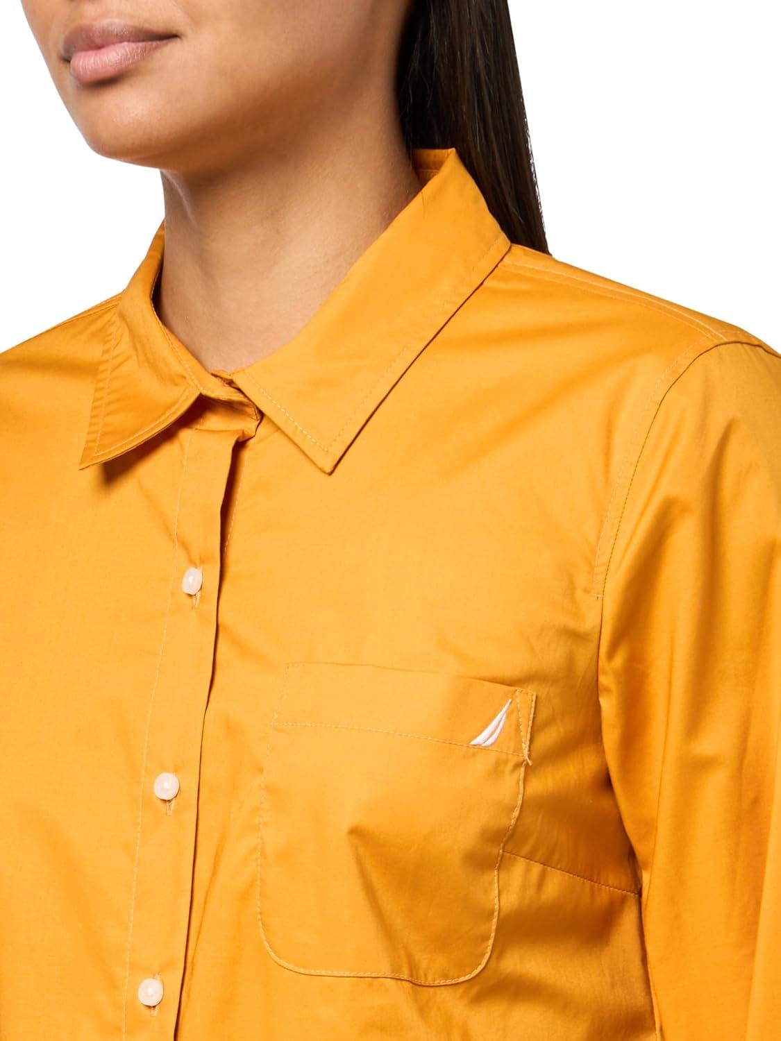 Nautica Womens Button Front Long Sleeve Roll Tab Shirt(Sunflower)