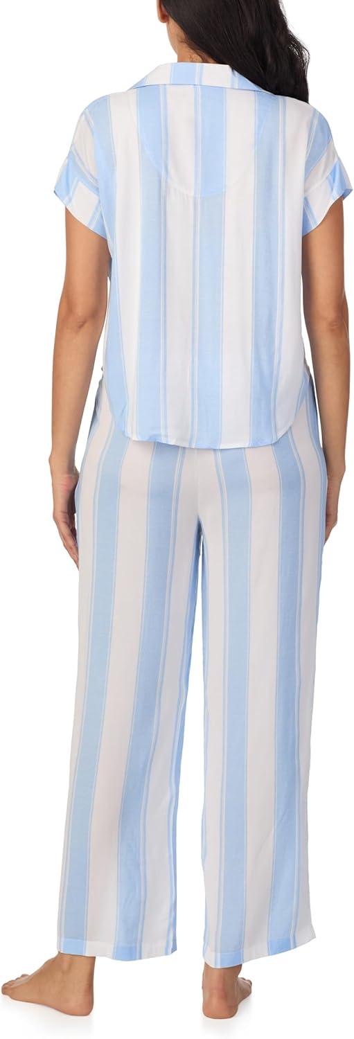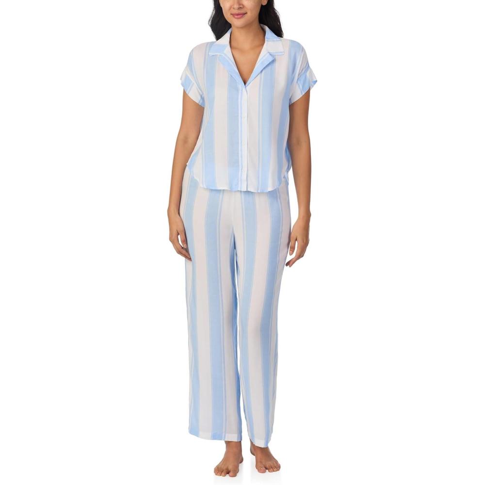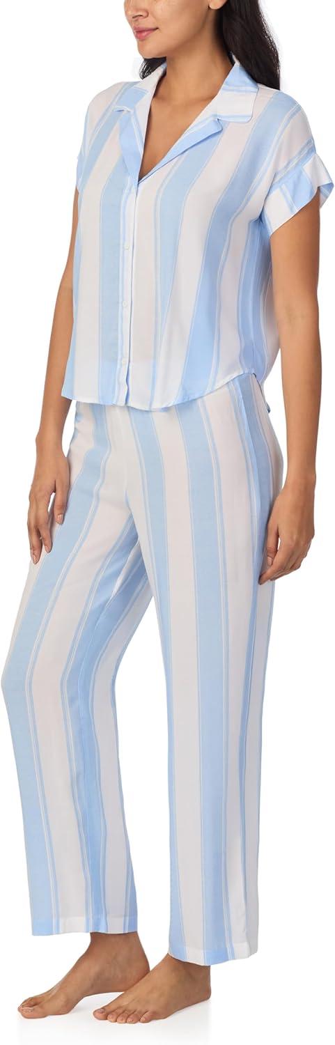 Nautica Womens Button Up Pajama Set - 2-Piece Summer Lightweight PJ Set - Top and Pants - Lounge and Sleep Sets for Women(Blue Stripe)