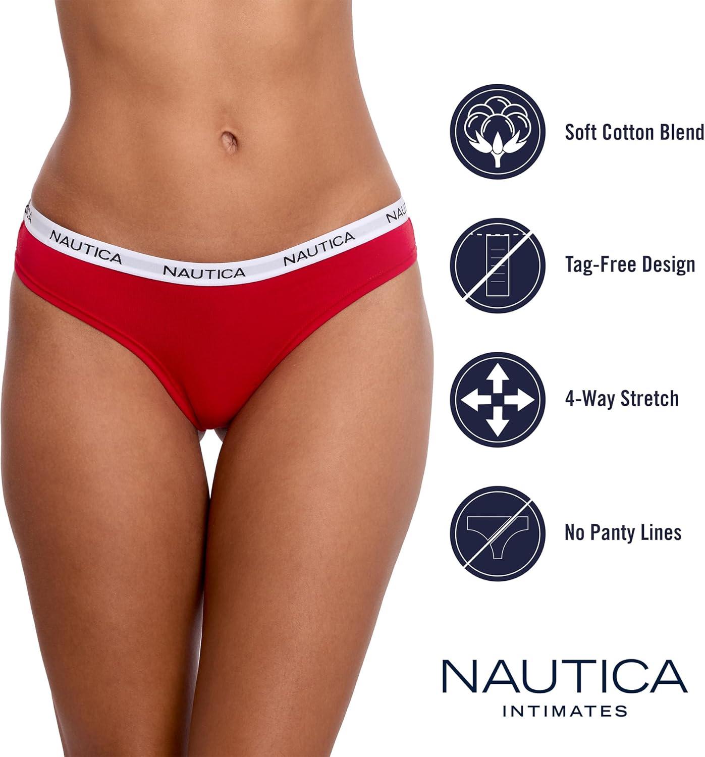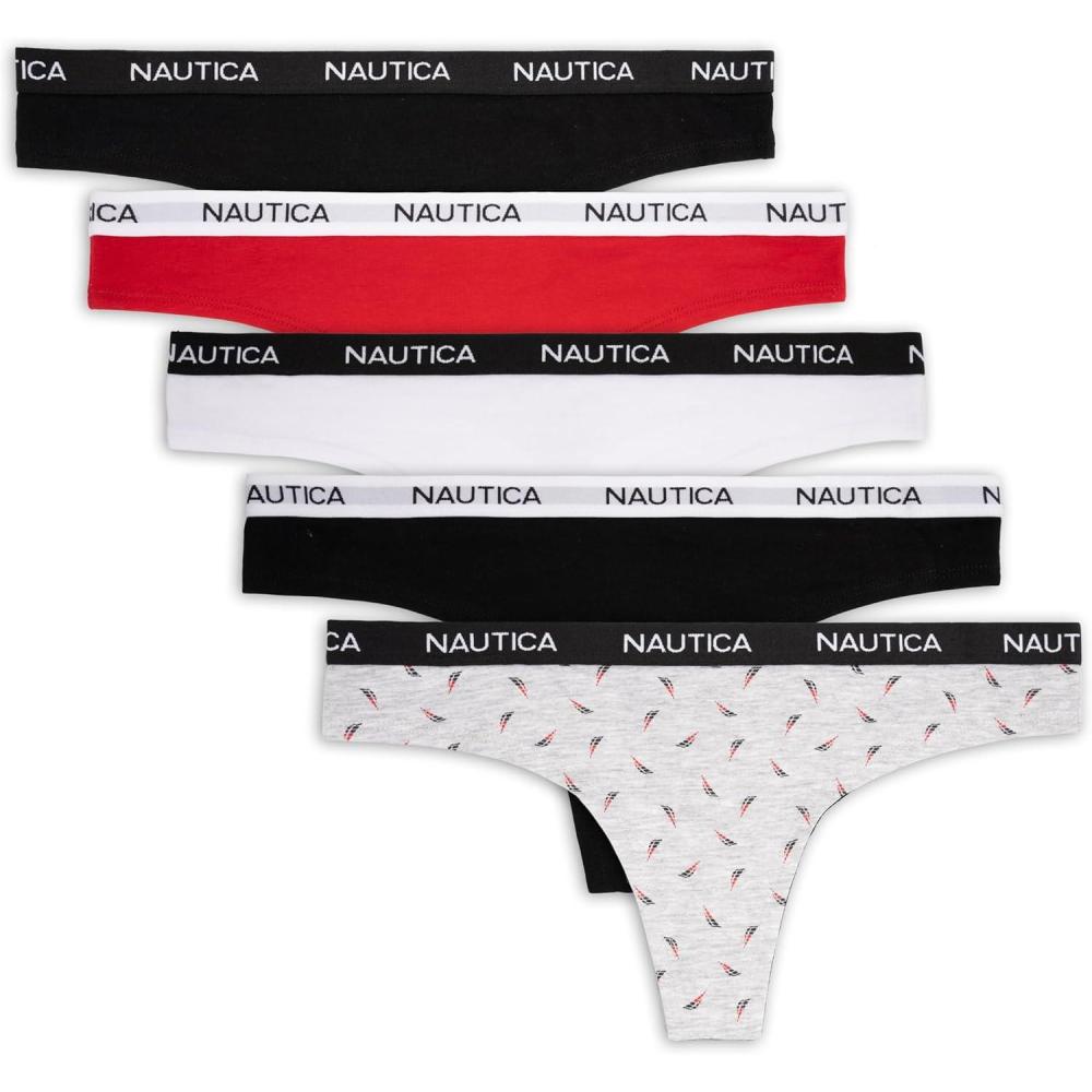 Nautica Women’s Cotton Thong Underwear Set, 5-Pack(Nt Sail Logo/Black/White/Barbados Cherry/Black)