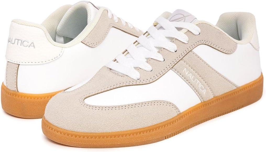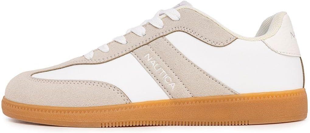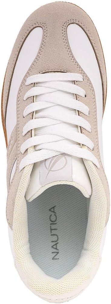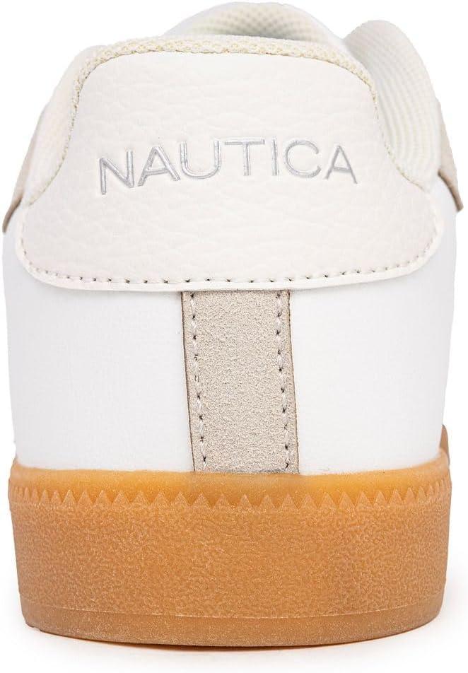 Nautica Women's White Lace-Up Sneakers with Metal Logo – a perfect blend of style and comfort. Elevate your fashion game with these trendy tennis shoes designed for the modern woman. Crafted in pristine white, these sneakers feature a striking metal logo for a touch of sophistication. The back of the shoe boasts vibrant colors, adding a playful twist to your casual ensemble. Walk with confidence and make a fashion statement with every step. Constructed with quality materials, these Nautica sneakers ensure durability and lasting comfort. Whether you're running errands, meeting friends, or enjoying a leisurely day out, these lace-up sneakers provide the perfect combination of on-trend style and all-day ease. Versatile and chic, the Nautica Women's Lace-Up Sneakers effortlessly complement various outfits, from casual denim to athleisure wear. The attention to detail, from the metal logo to the colorful back accent, sets these shoes apart, making them a must-have for any fashion-forward woman. Experience the perfect fusion of fashion and function with Nautica Women's White Lace-Up Sneakers. Elevate your footwear collection and step into a world of style, comfort, and confidence. Order now to add a touch of contemporary flair to your wardrobe.