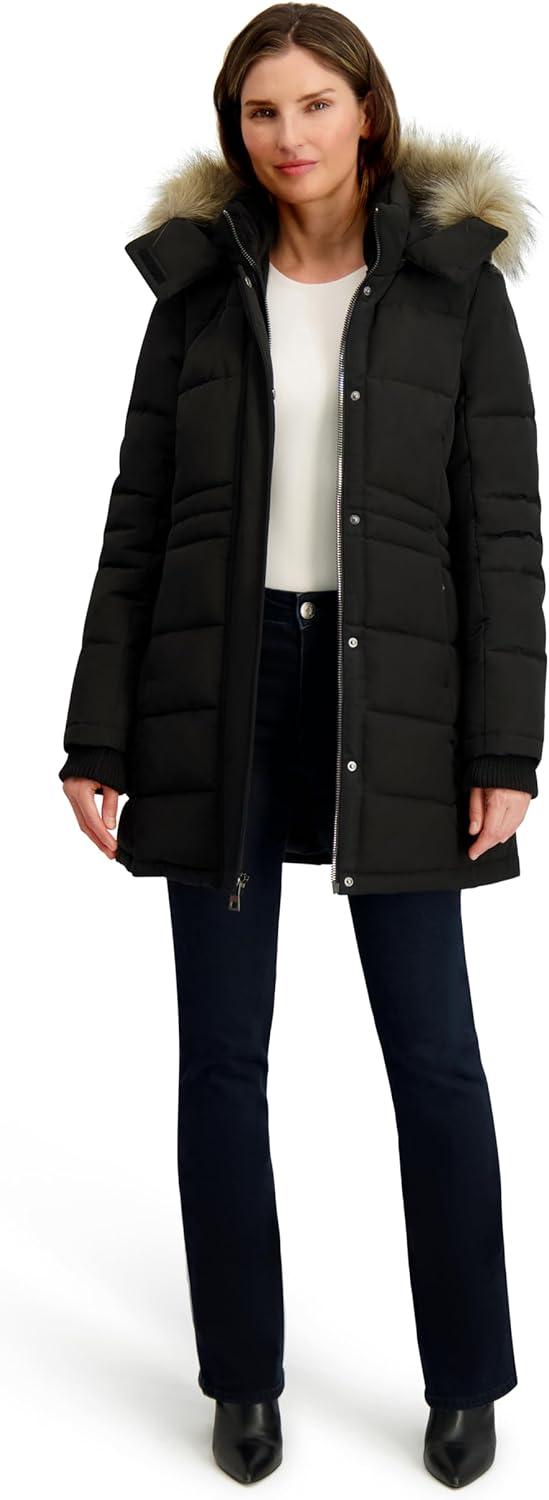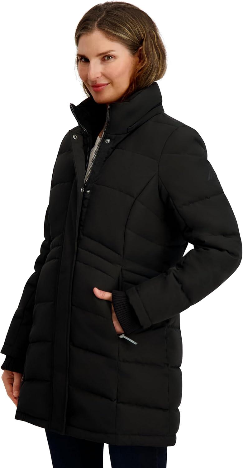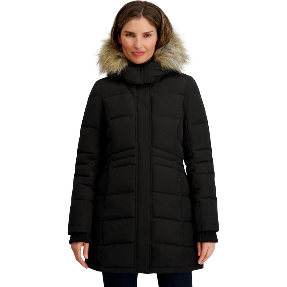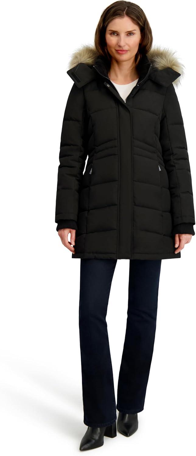 Nautica Women's Mist Heavyweight Winter Coat– Puffer Jacket with Detachable Faux Fur Hood(Black)