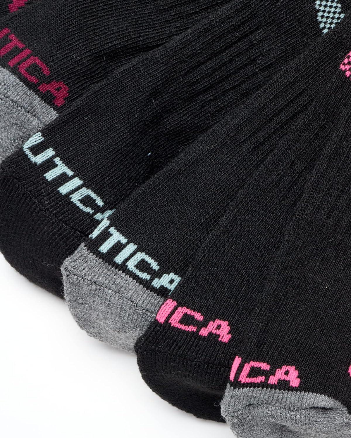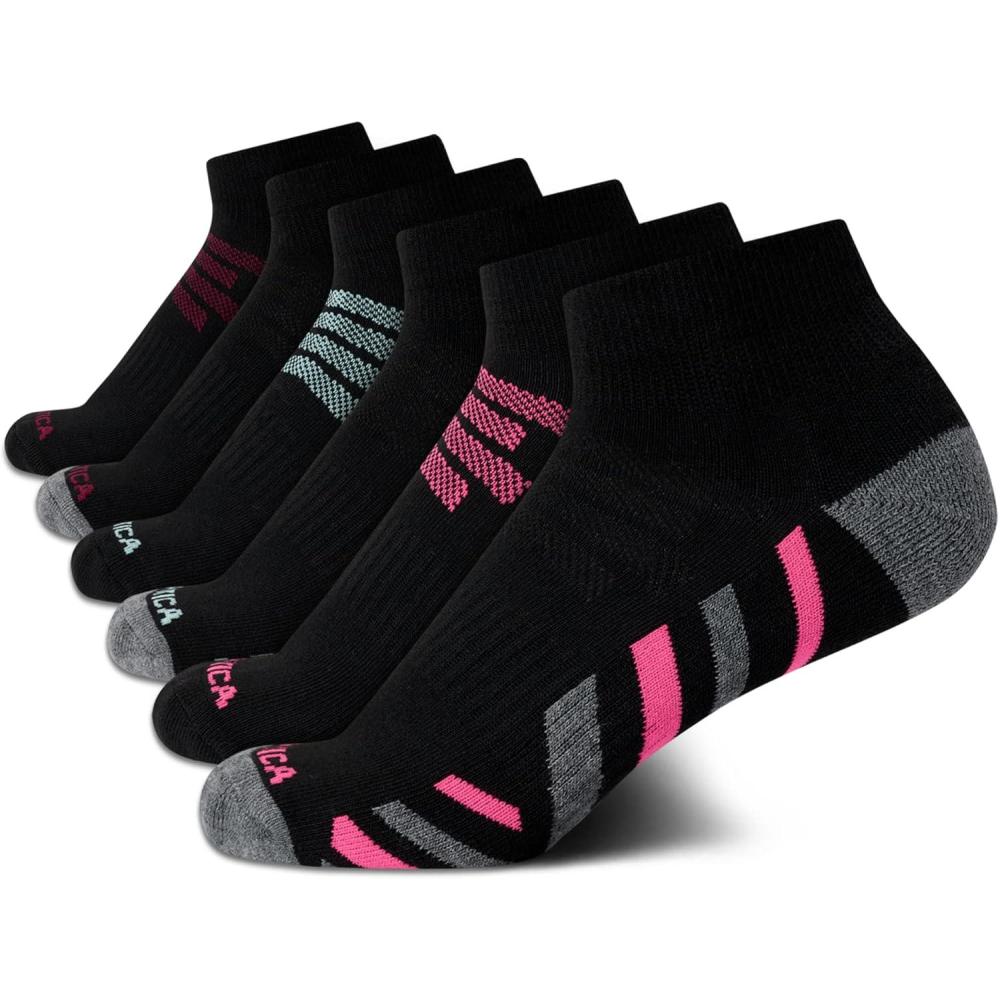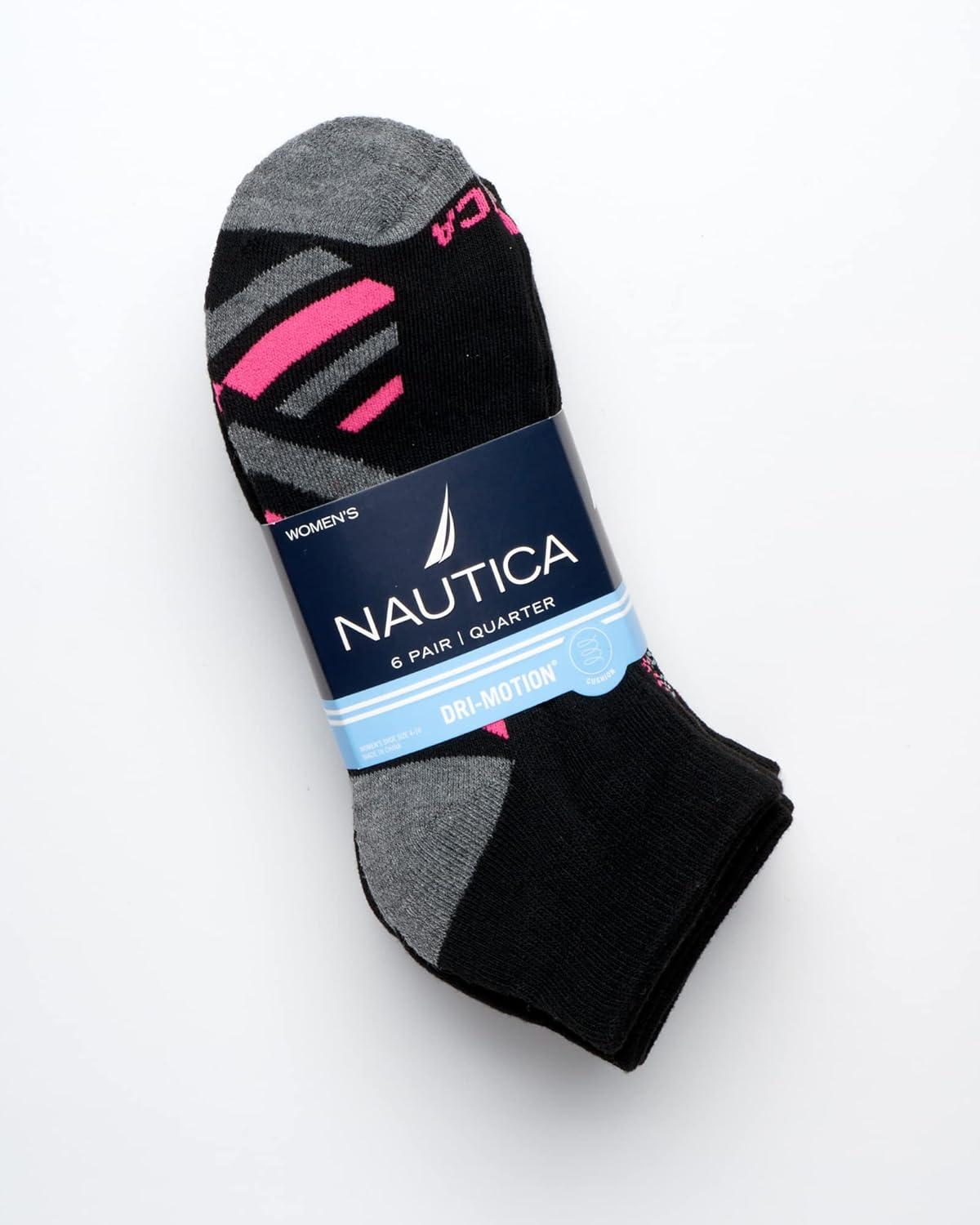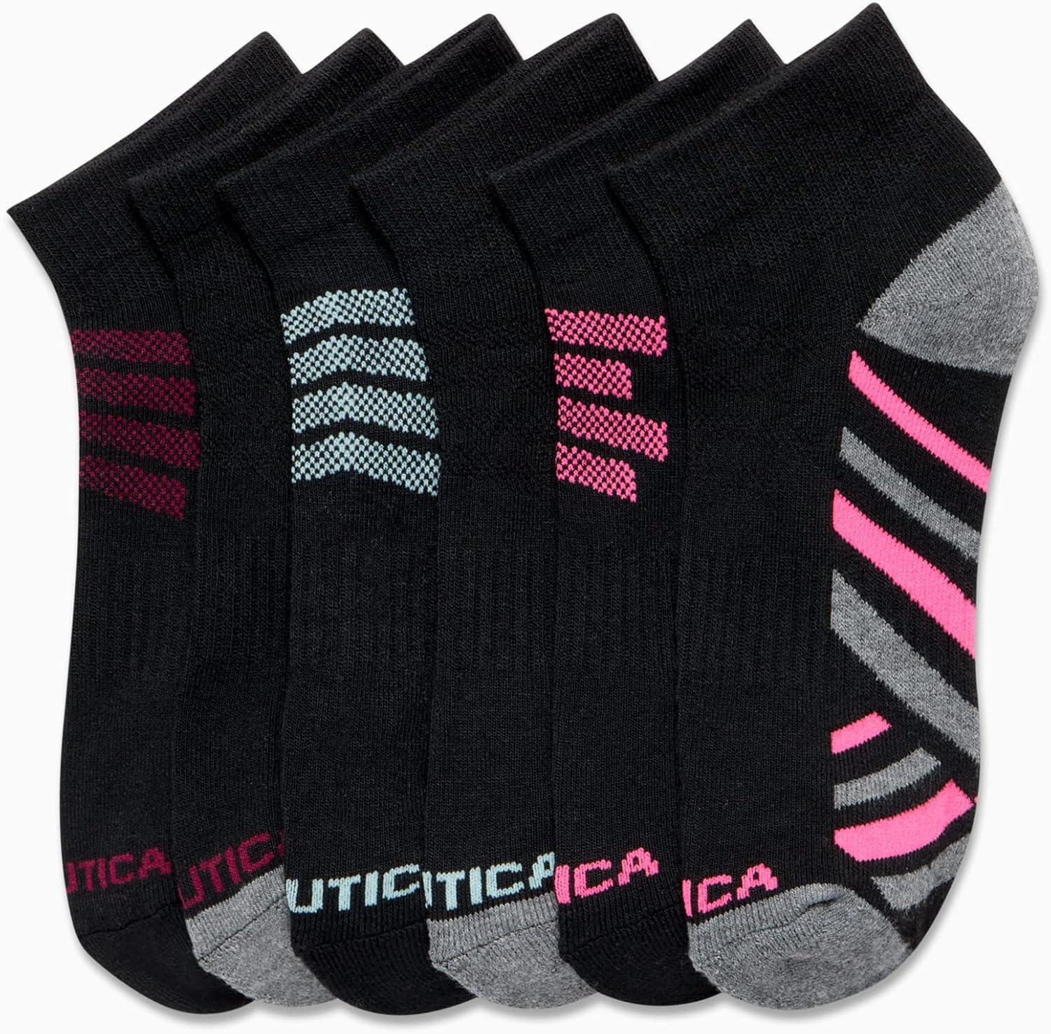 Nautica Womens Quarter Socks – 6 Pack Breathable Cushioned Athletic Performance Ankle Socks for Women (Sizes: 4-10)(Black/Multi)