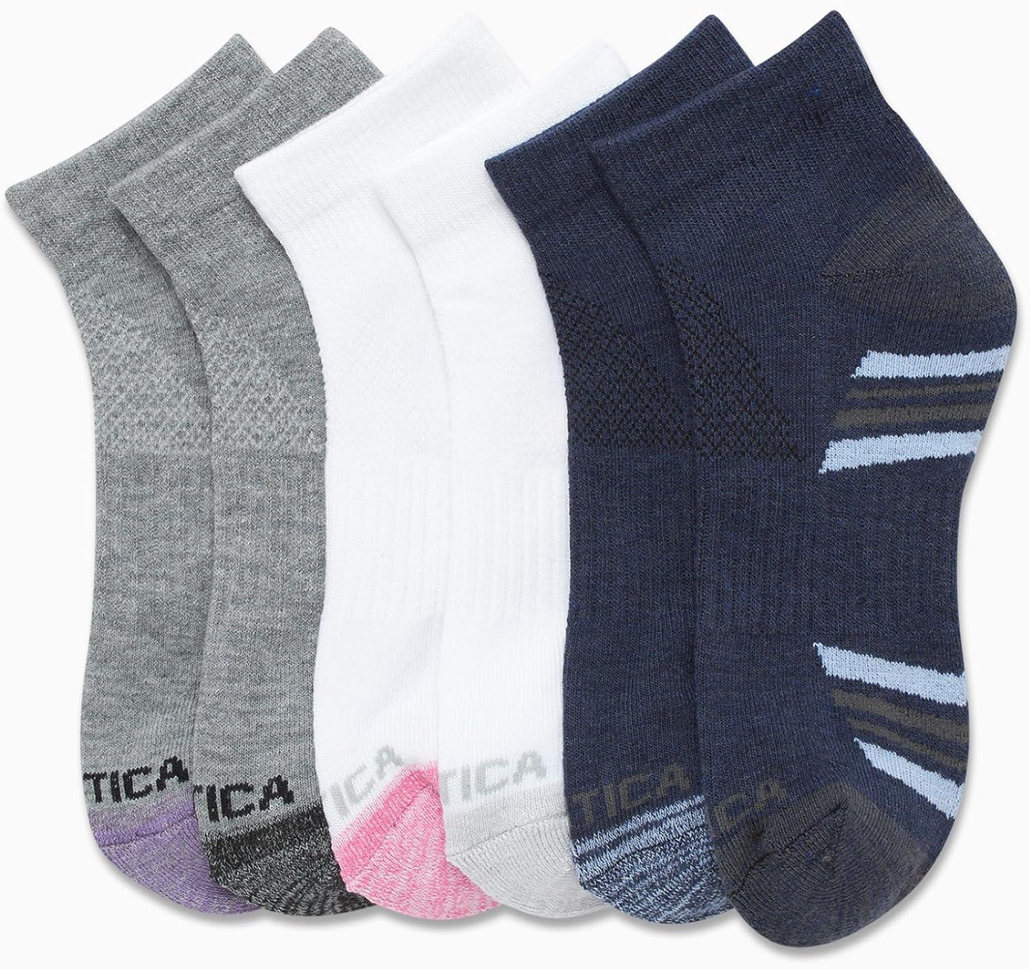 Nautica Womens Quarter Socks – 6 Pack Breathable Cushioned Athletic Performance Ankle Socks for Women (Sizes: 4-10)(Denim Assorted)