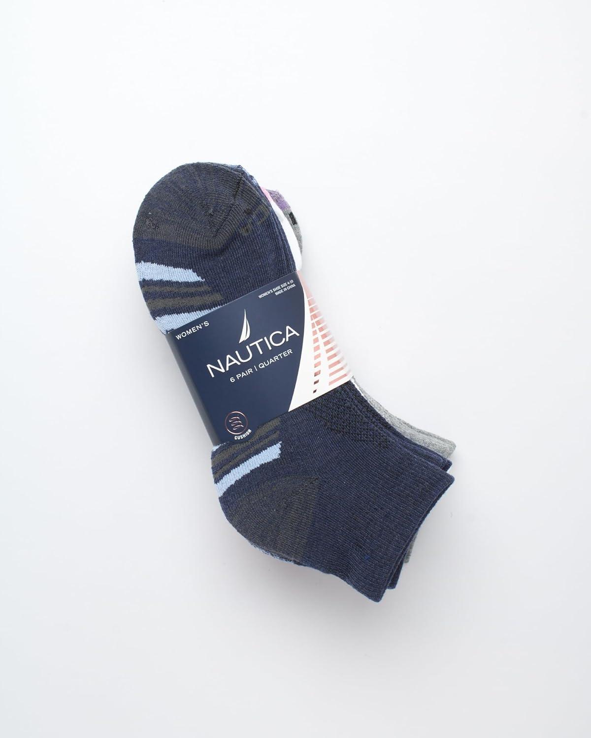 imageNautica Womens Quarter Socks  6 Pack Breathable Cushioned Athletic Performance Ankle Socks for Women Sizes 410Denim Assorted