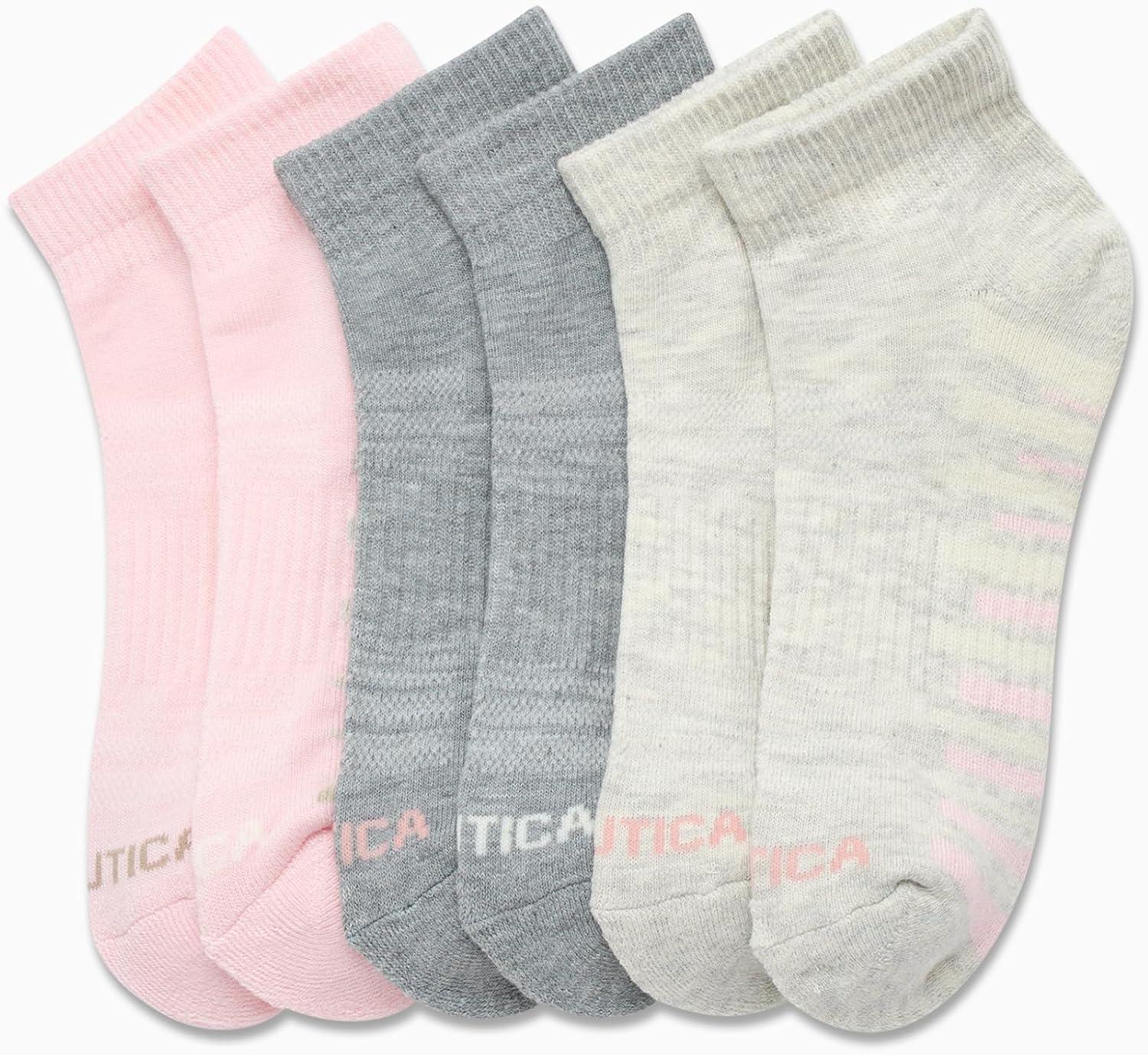 Nautica Womens Quarter Socks – 6 Pack Breathable Cushioned Athletic Performance Ankle Socks for Women (Sizes: 4-10)(Pink/Grey/Tan)