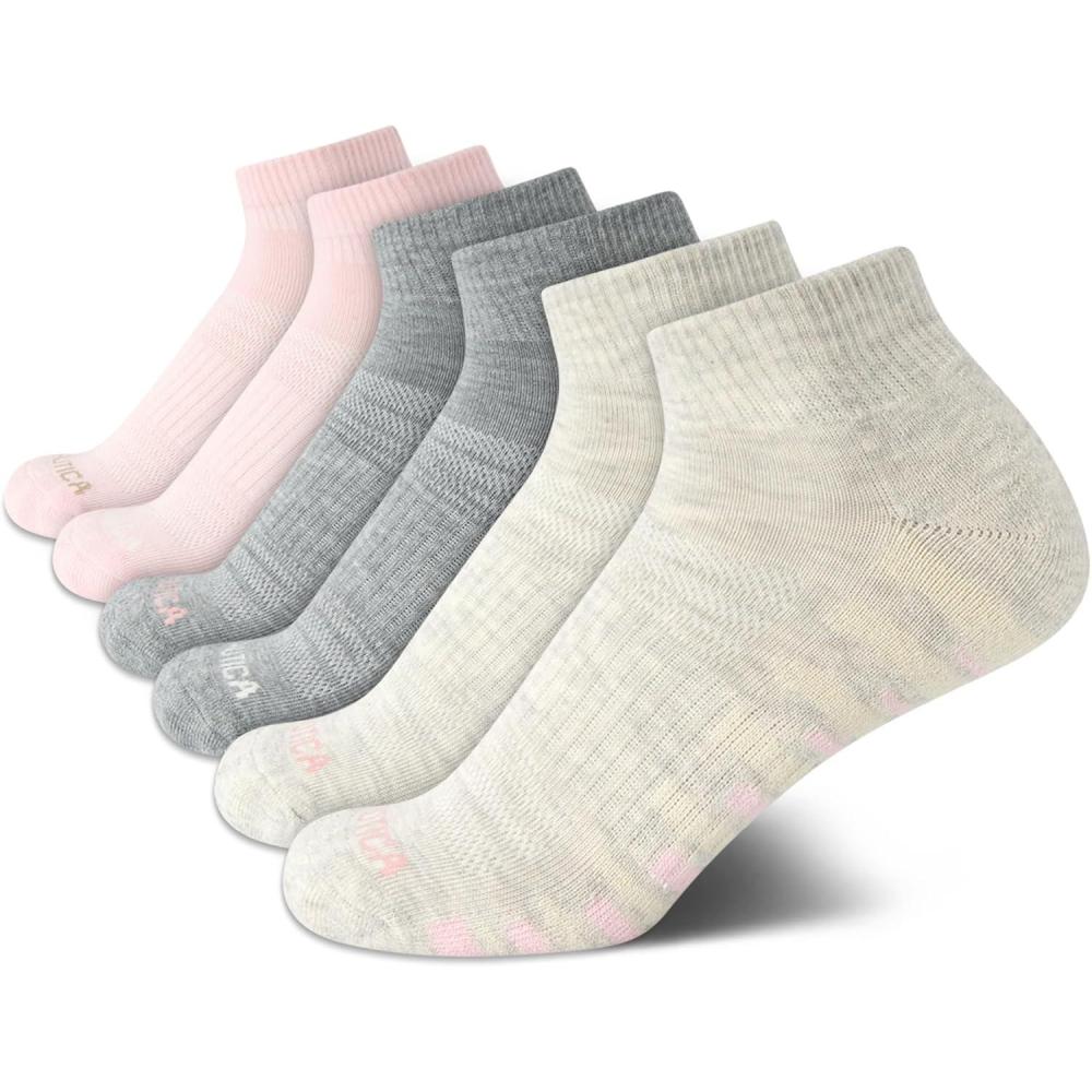 Nautica Womens Quarter Socks – 6 Pack Breathable Cushioned Athletic Performance Ankle Socks for Women (Sizes: 4-10)(Pink Oatmeal)