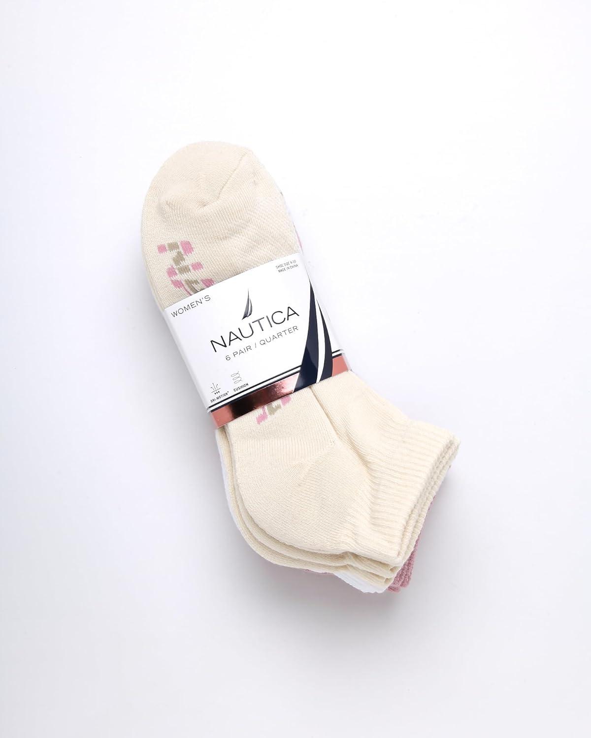 Nautica Womens Quarter Socks - 6 Pack Breathable Cushioned Athletic Performance Ankle Socks for Women (Sizes: 4-10)(Pink Oatmeal)