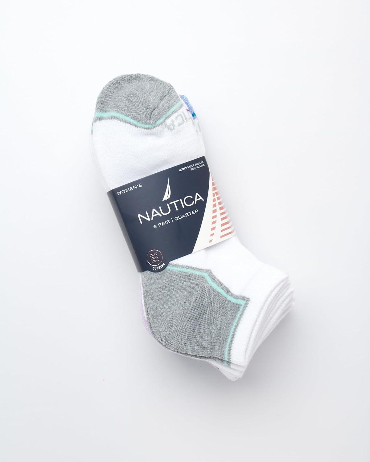 imageNautica Womens Quarter Socks  6 Pack Breathable Cushioned Athletic Performance Ankle Socks for Women Sizes 410White Multi