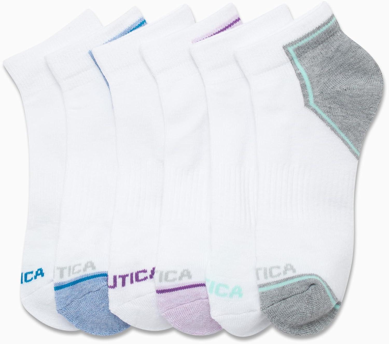 Nautica Womens Quarter Socks – 6 Pack Breathable Cushioned Athletic Performance Ankle Socks for Women (Sizes: 4-10)(White Multi)