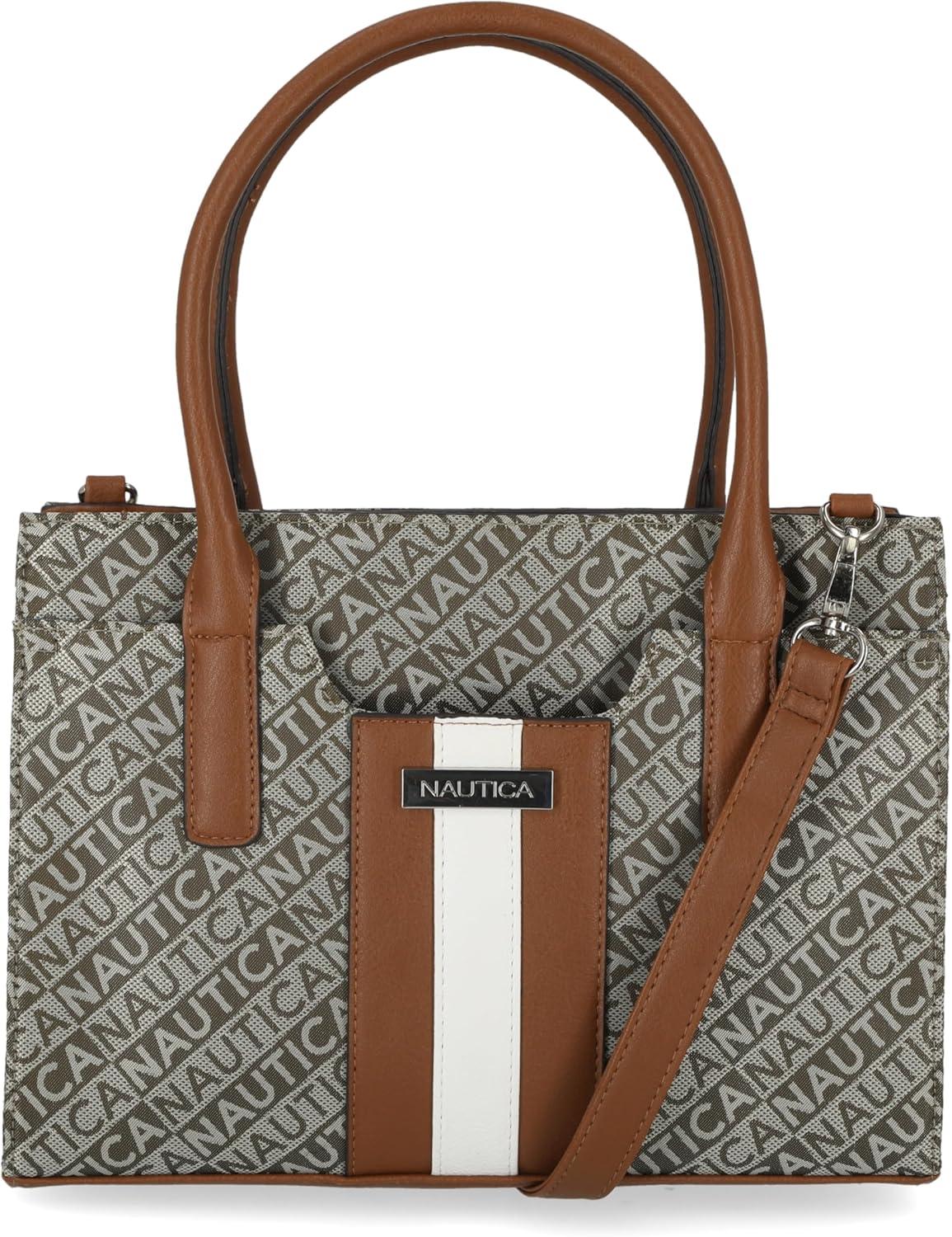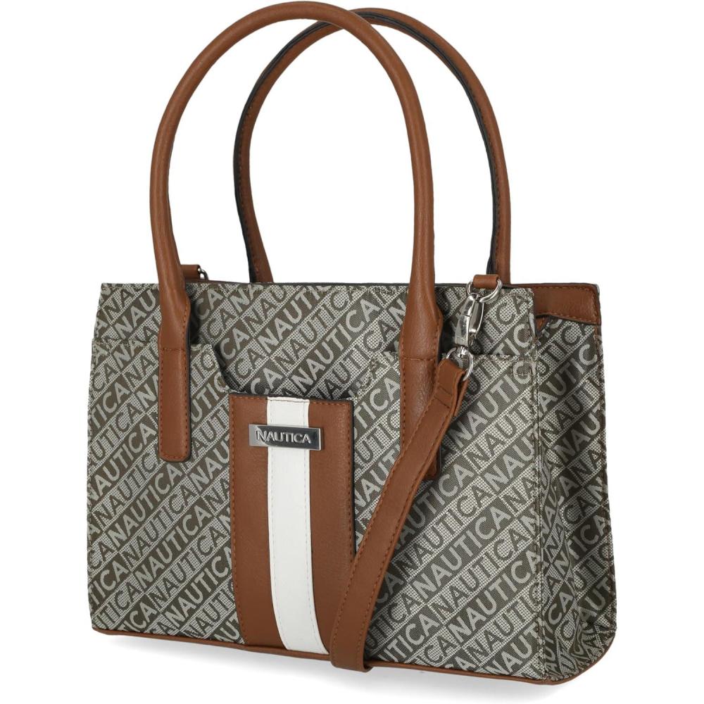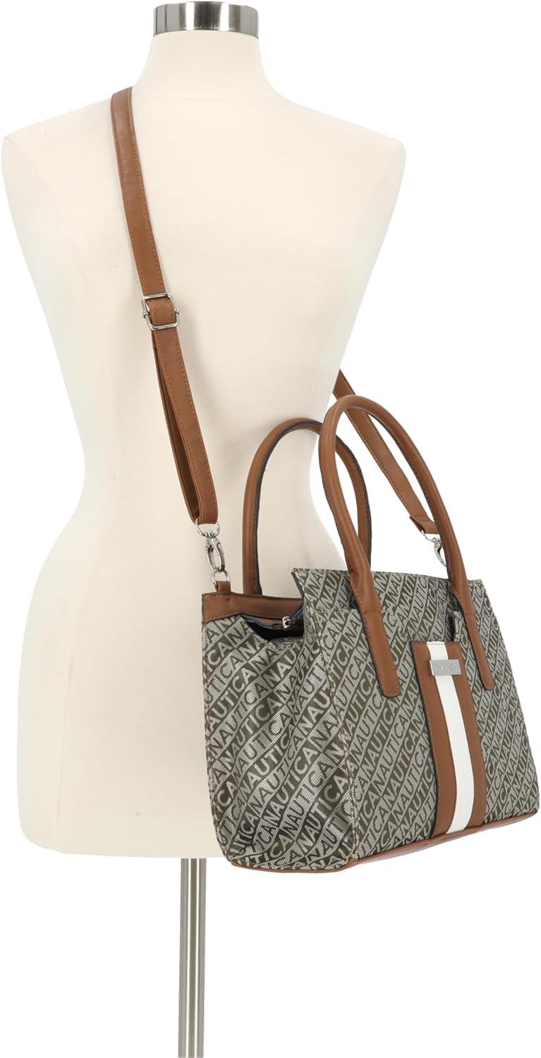 imageNautica Womens Sandy Jr Top Handel Satchel with Removable Crossbody StrapOlive Lakeside Jacquard