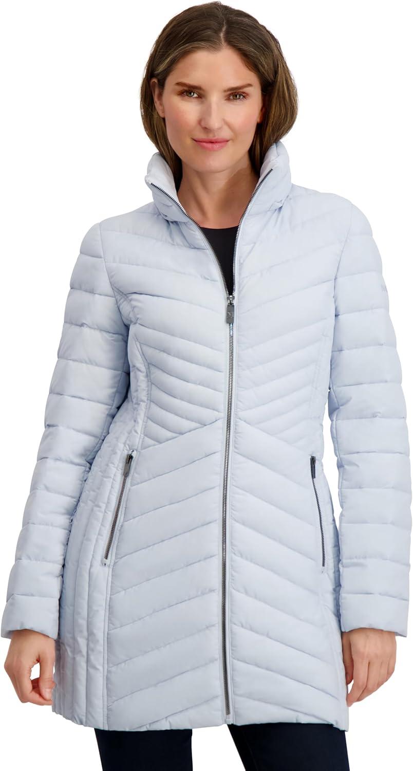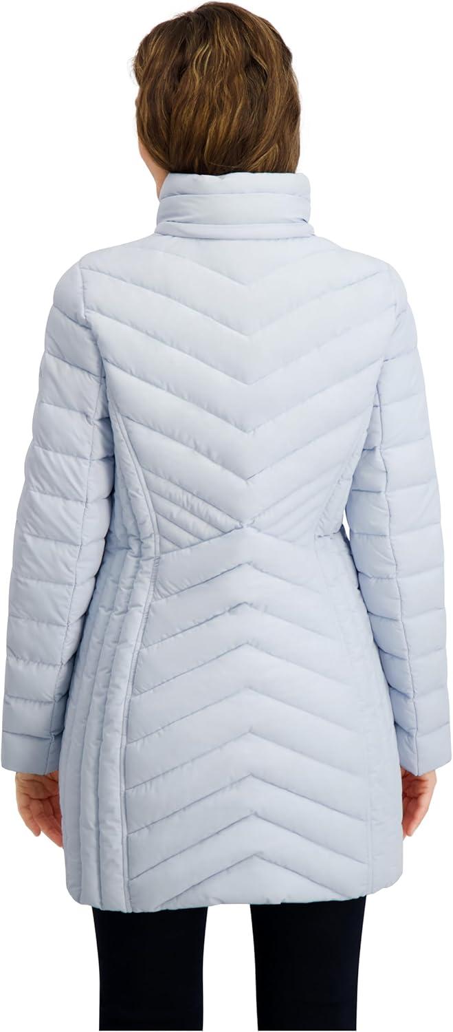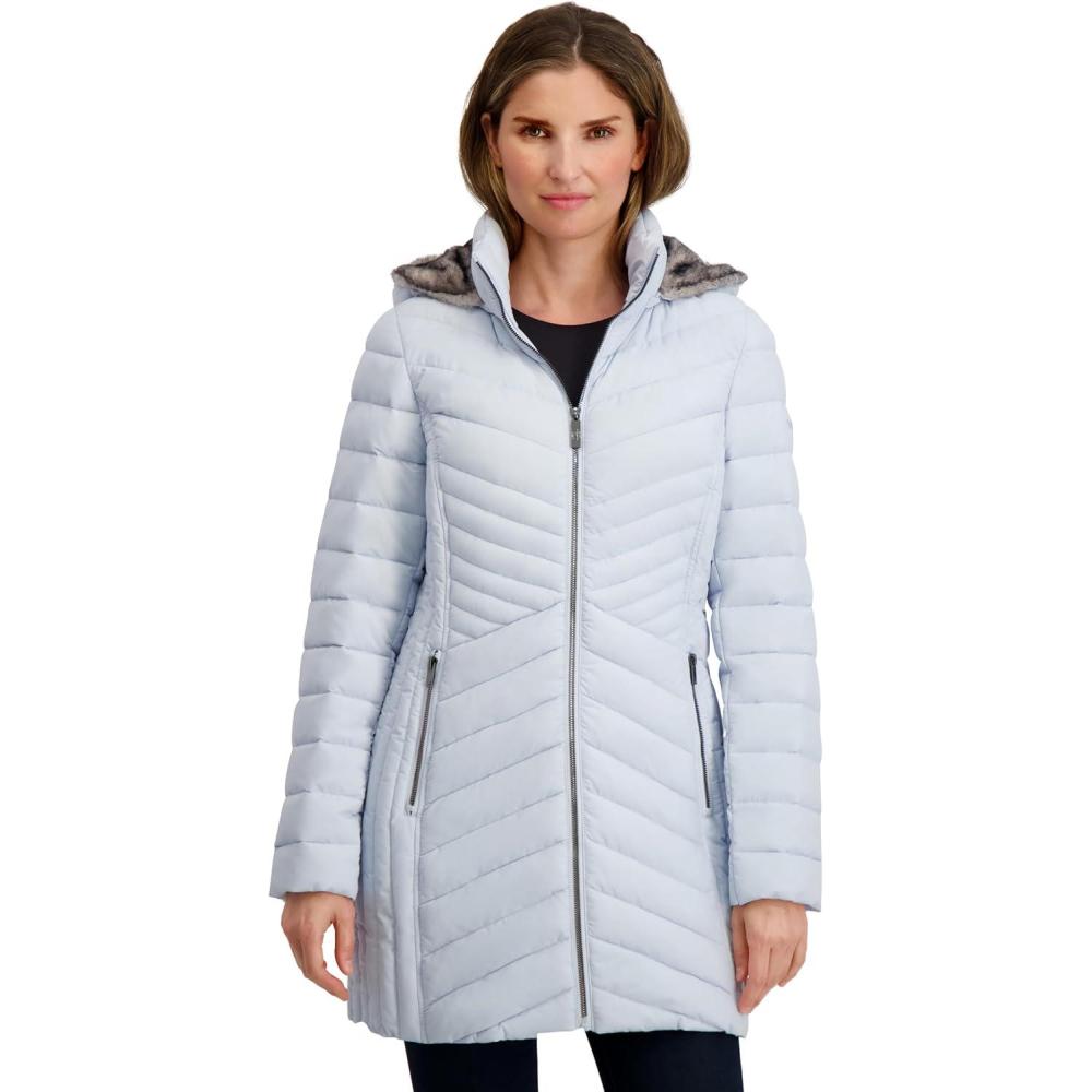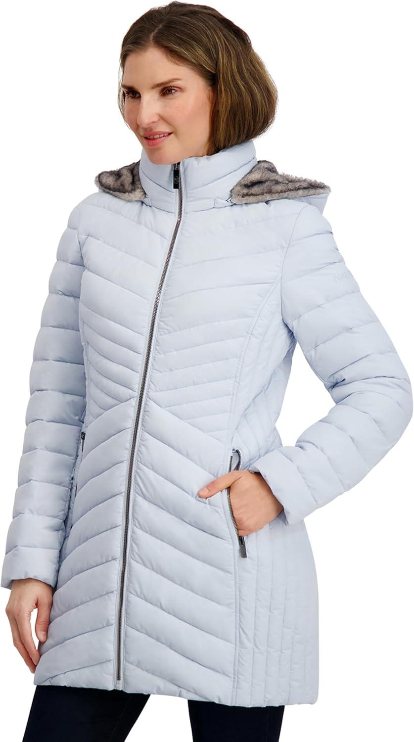 Nautica womens Stretch Puffer Jacket- Wind & Water-resistant Winter Coat Faux Fur Lined Hood(Limestone)