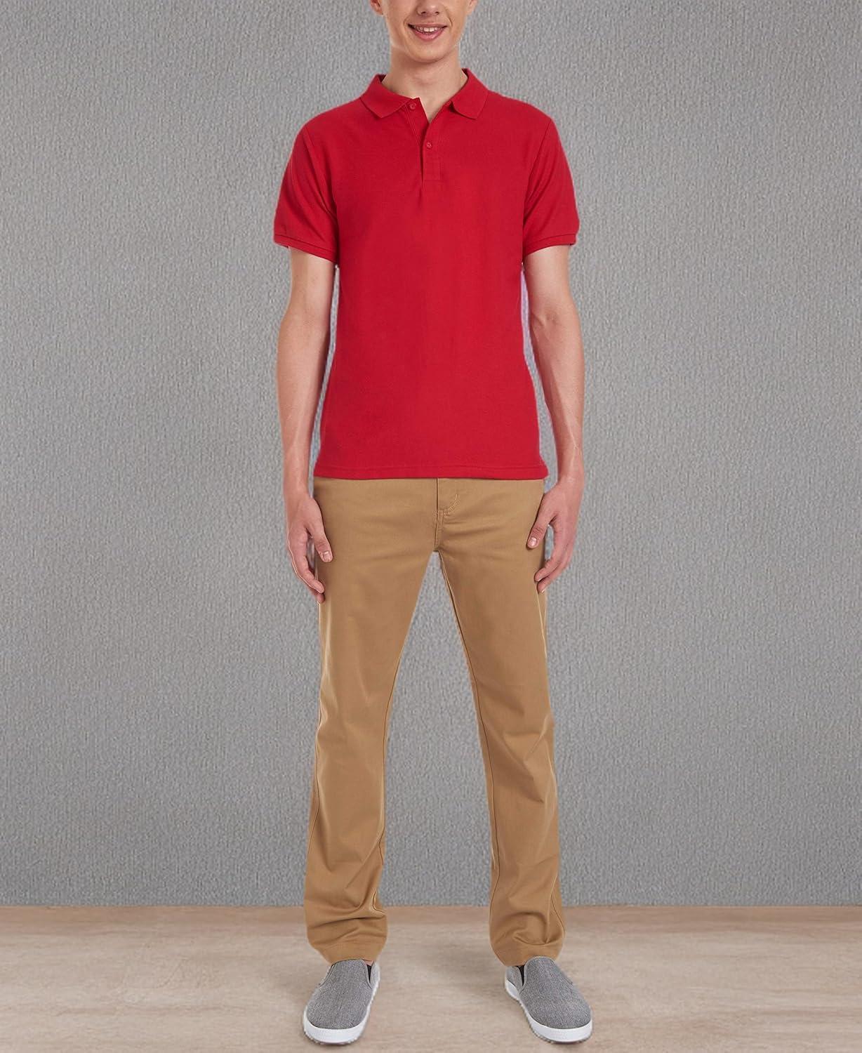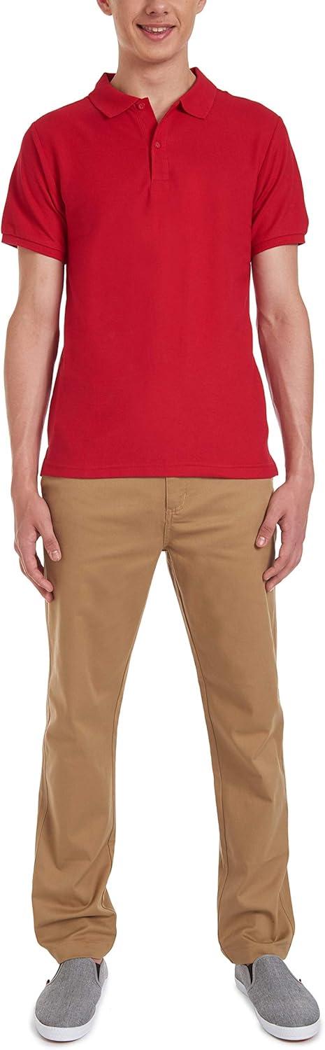 Nautica Young Men’s Uniform Short Sleeve Stretch Pique Polo(Red)